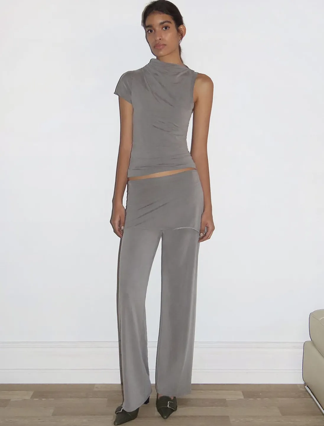 Dobbelt Lag, Asymmetrisk Ærme, Blød Hals Cupro Top Med Laserskårne Kanter.