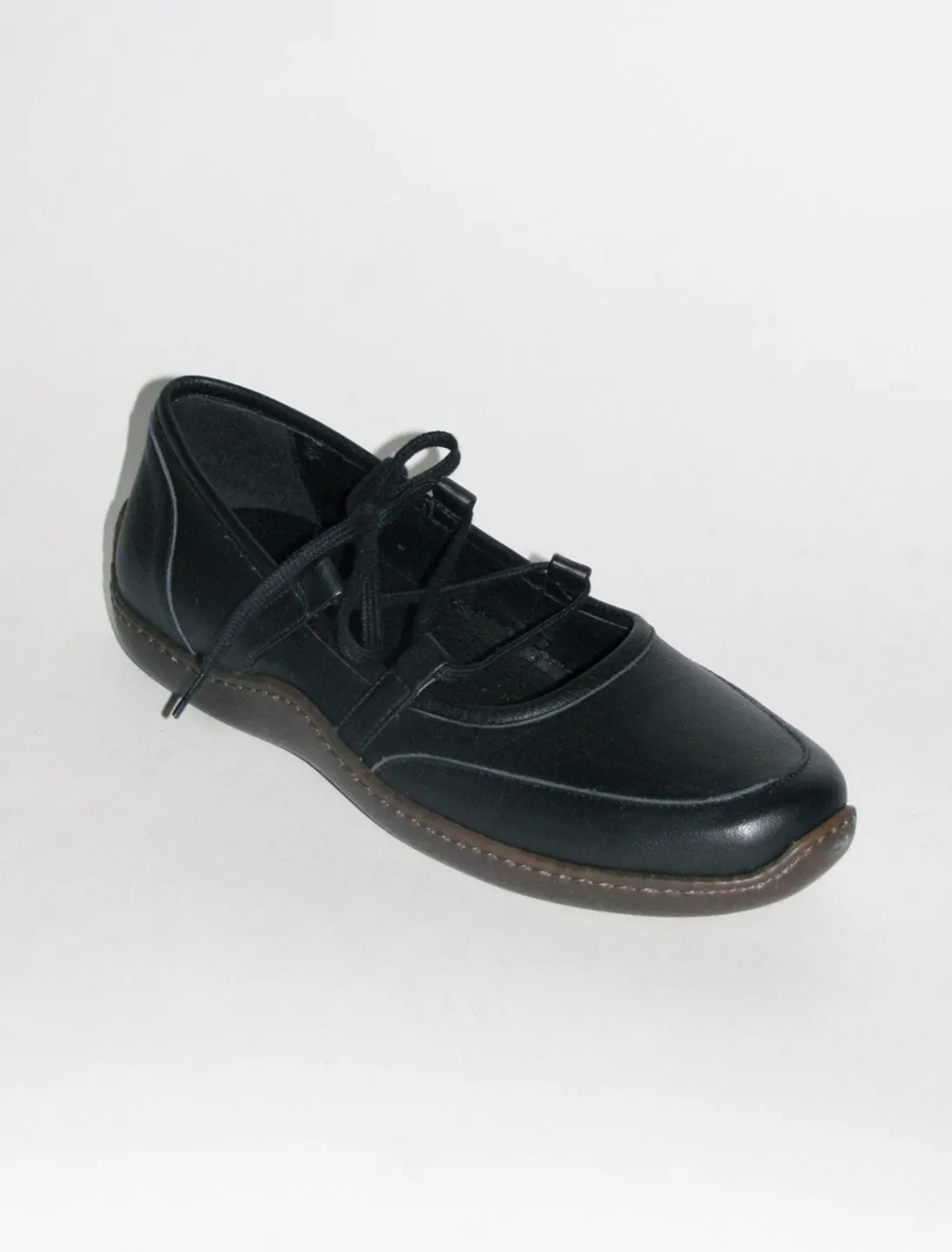 Gummisål Sporty Læderballerina Med Snørelukning.