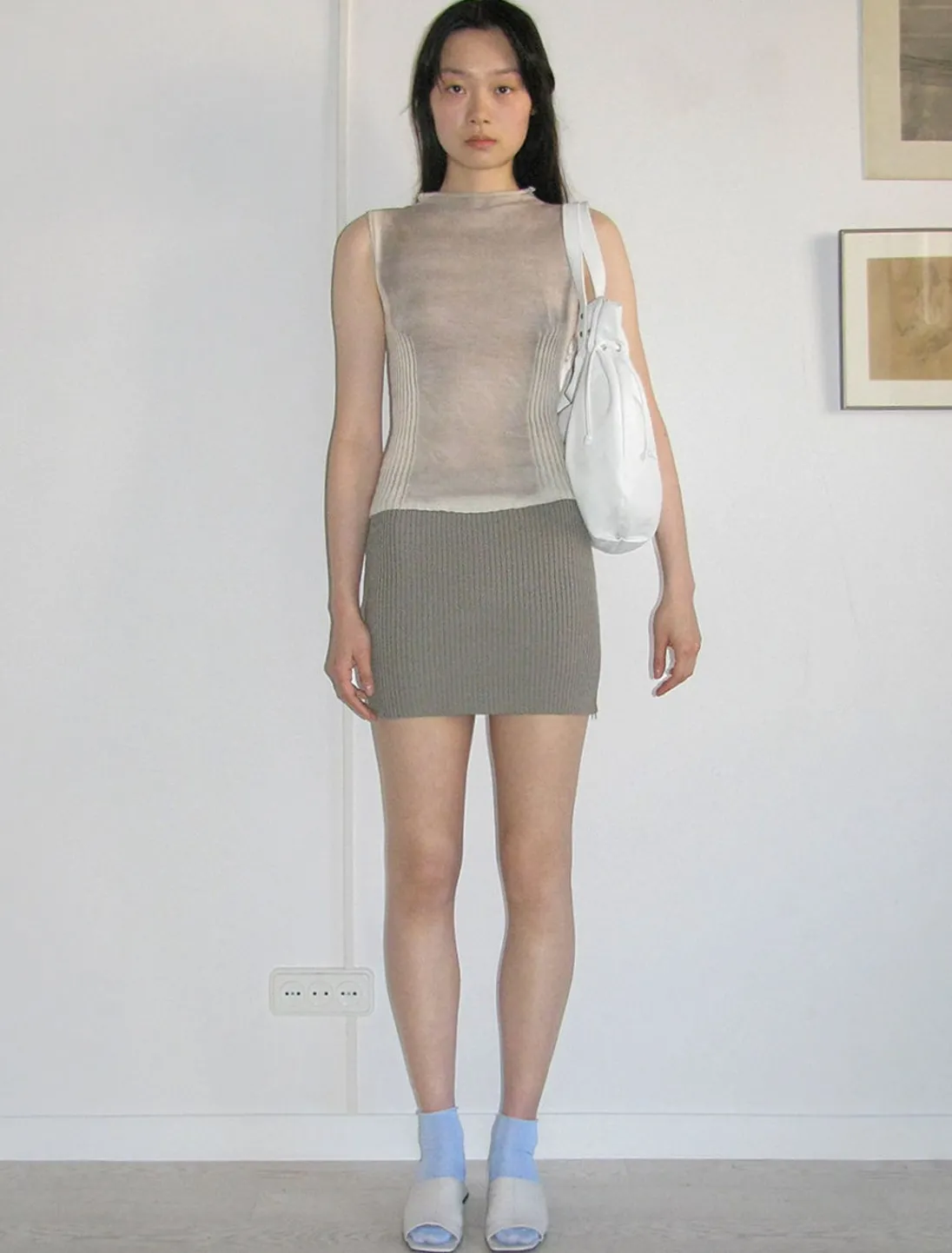 Økologisk Bomuldsstrikket Mininederdel Med Lynlås I Siden.