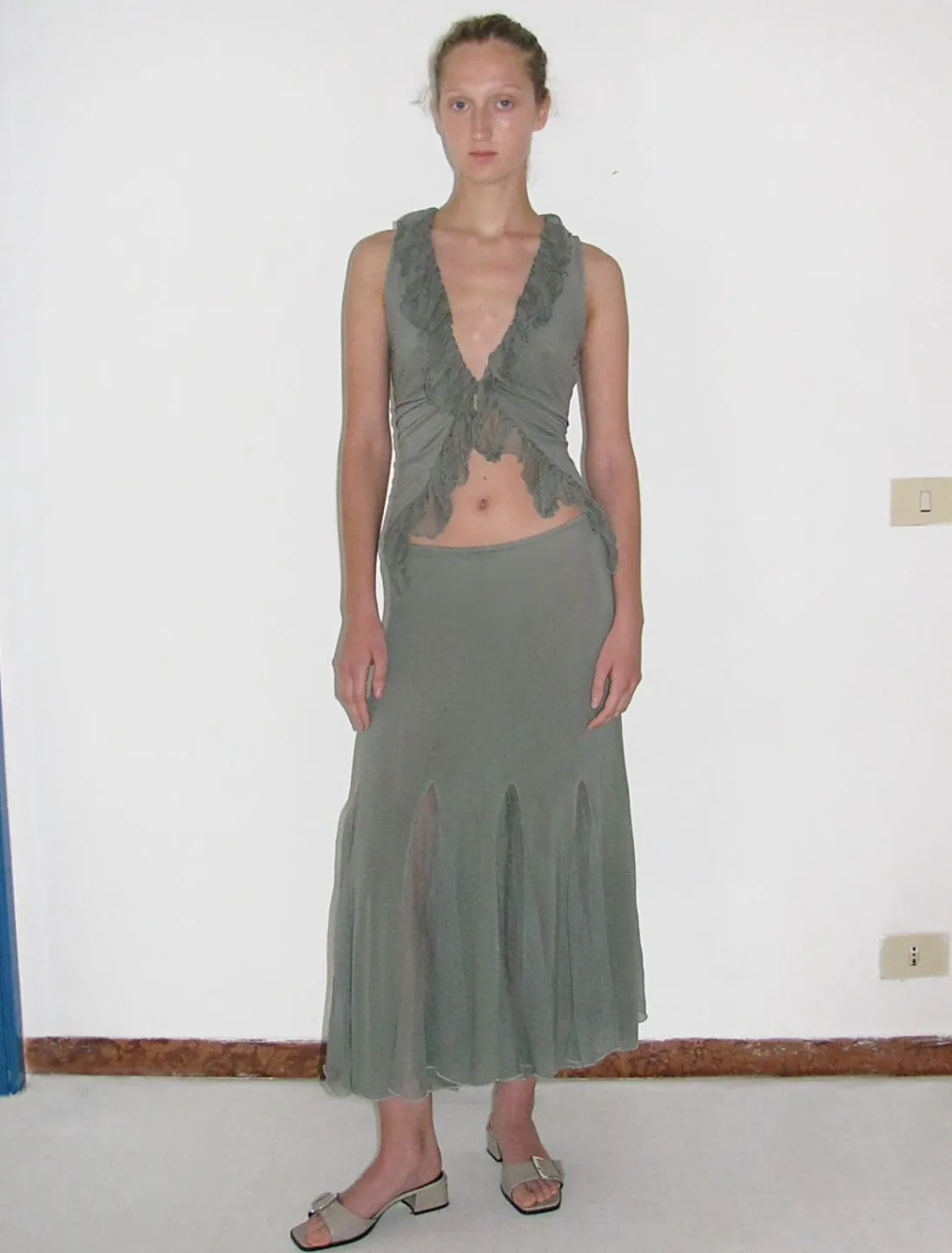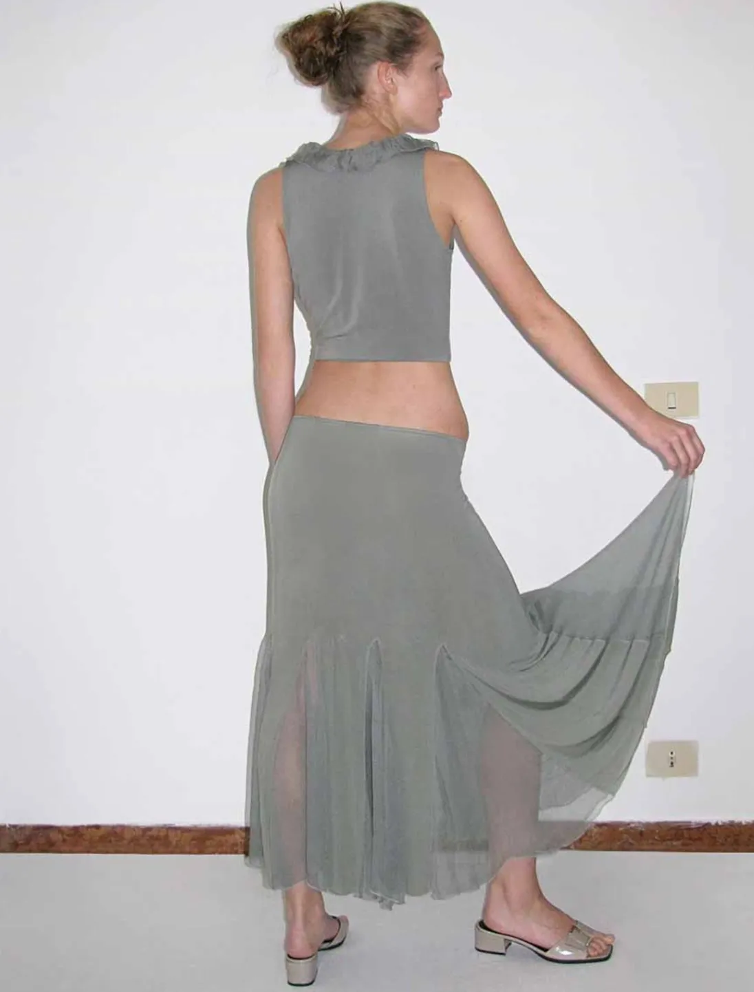 Lidt Gennemsigtigt, Elastisk Nederdel Med Delikat Silke Kiler.