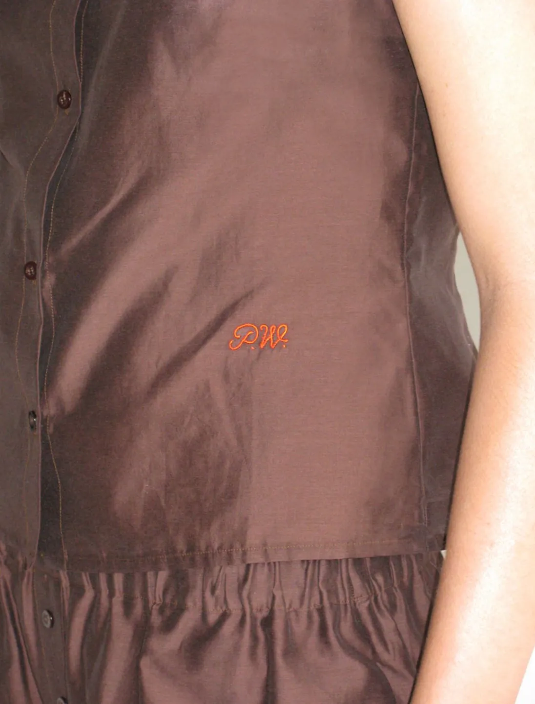 Delikat Skjortekravetop Med Knappning Foran Og Pw-Broderi.