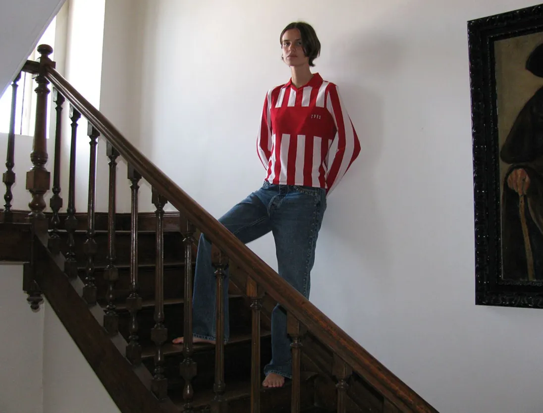 Stribet Sporty Top Med REtro Polo-Hals Og Pw89-Broderi.