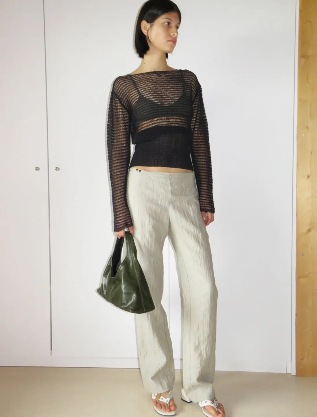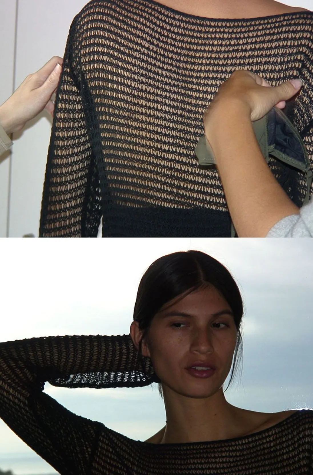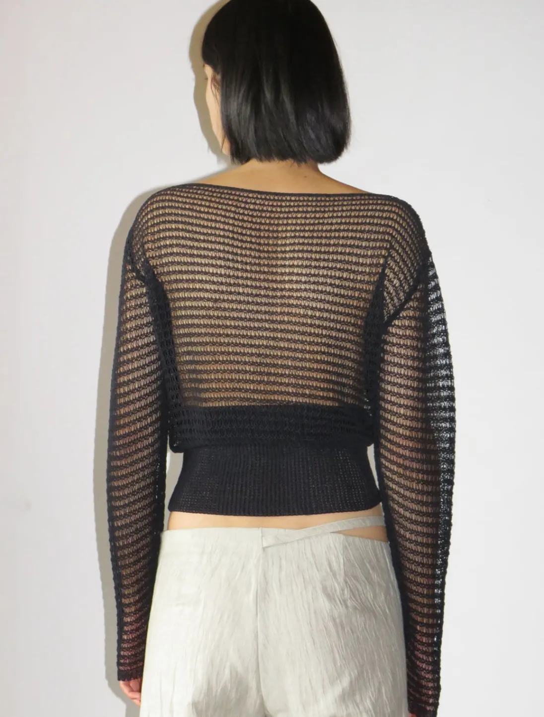 Langærmet, Strikket Top I Ledningstil. Bred Linning I Tætsiddende Ribkant.