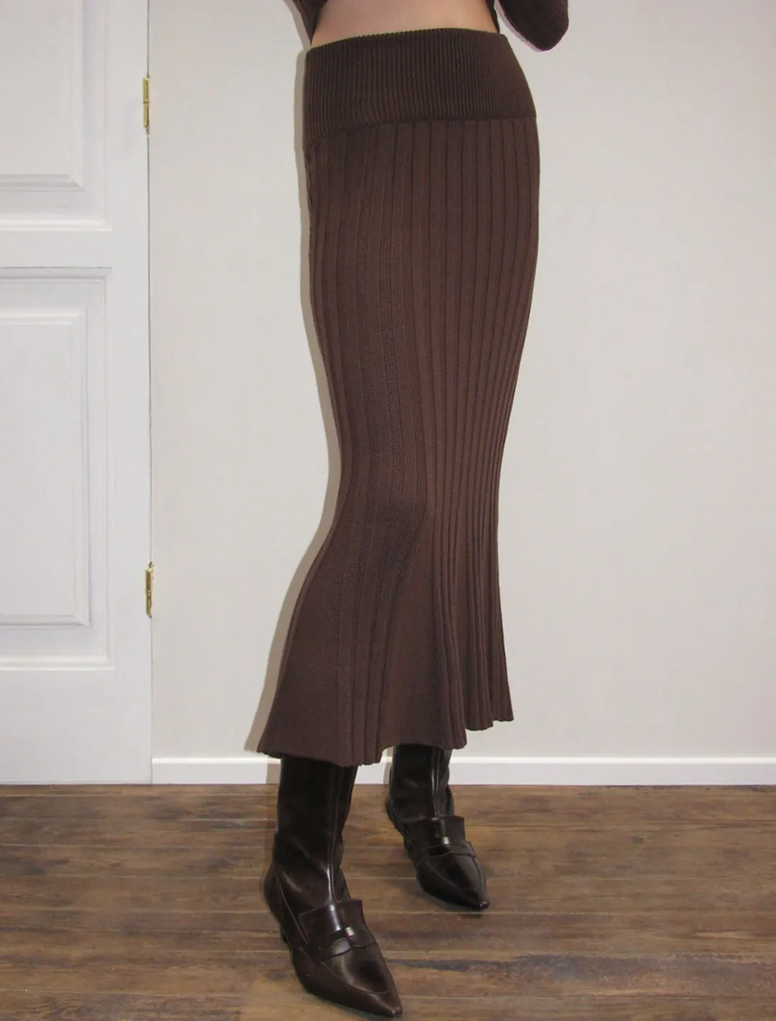Udvidet Strikket Lang Nederdel Lavet Af Et Blødt Garn.