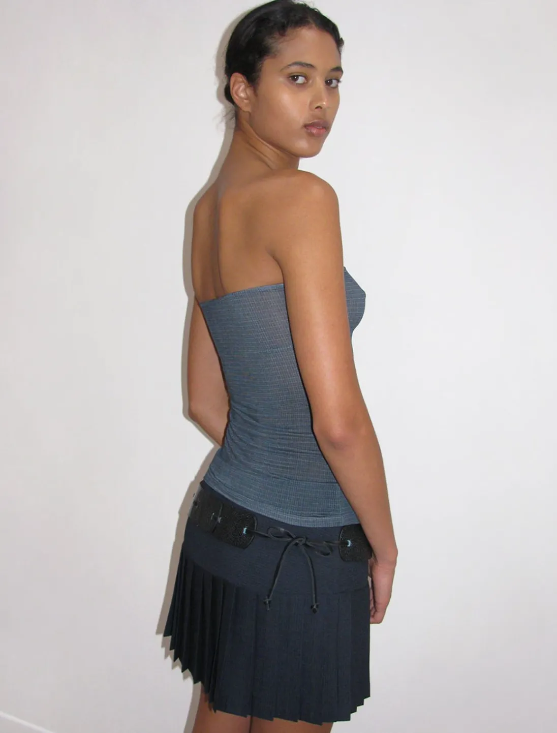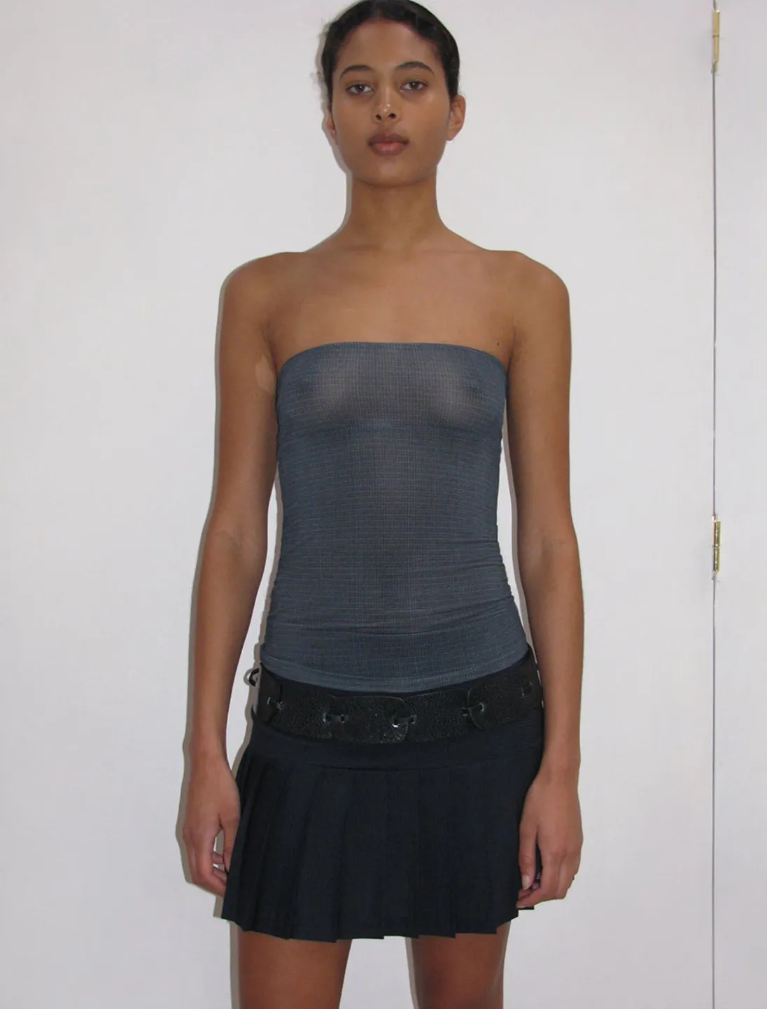 Lær, Delikat Bandeau-Top I Ternet Print.