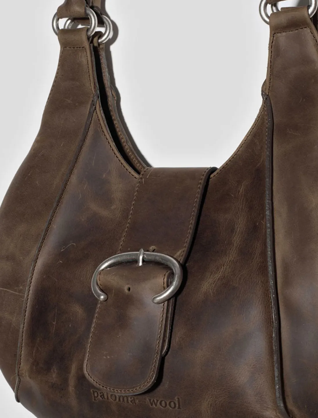 Afrundet Læderskuldertaske Med Spændedetalje Og Magnetlukning.