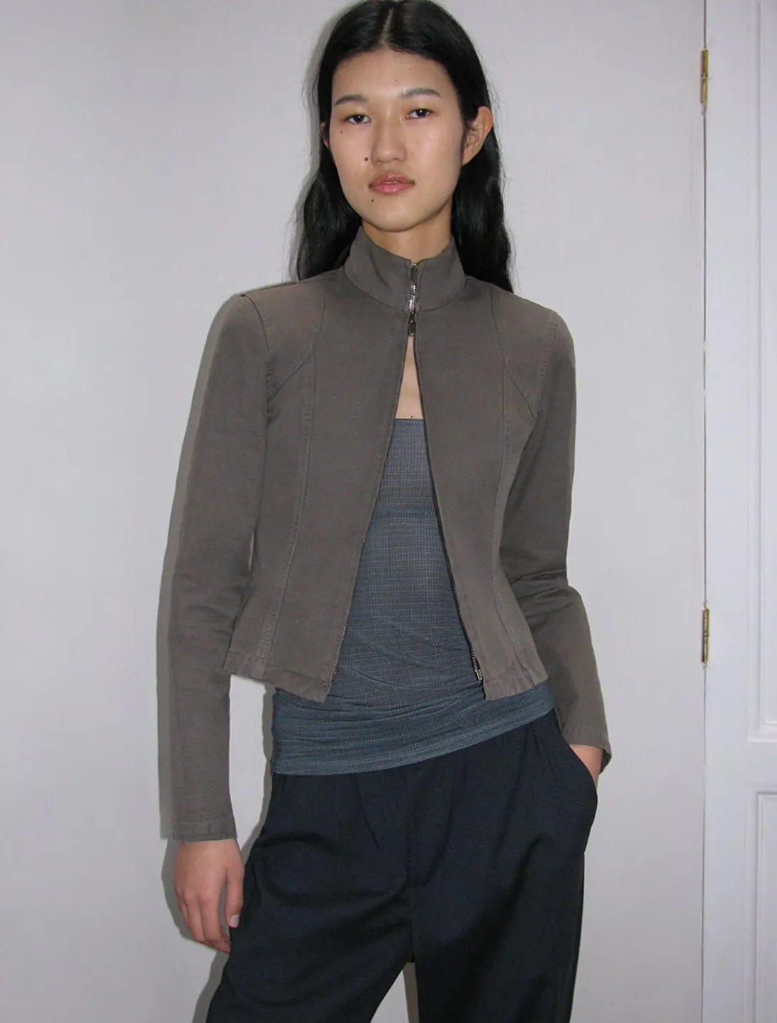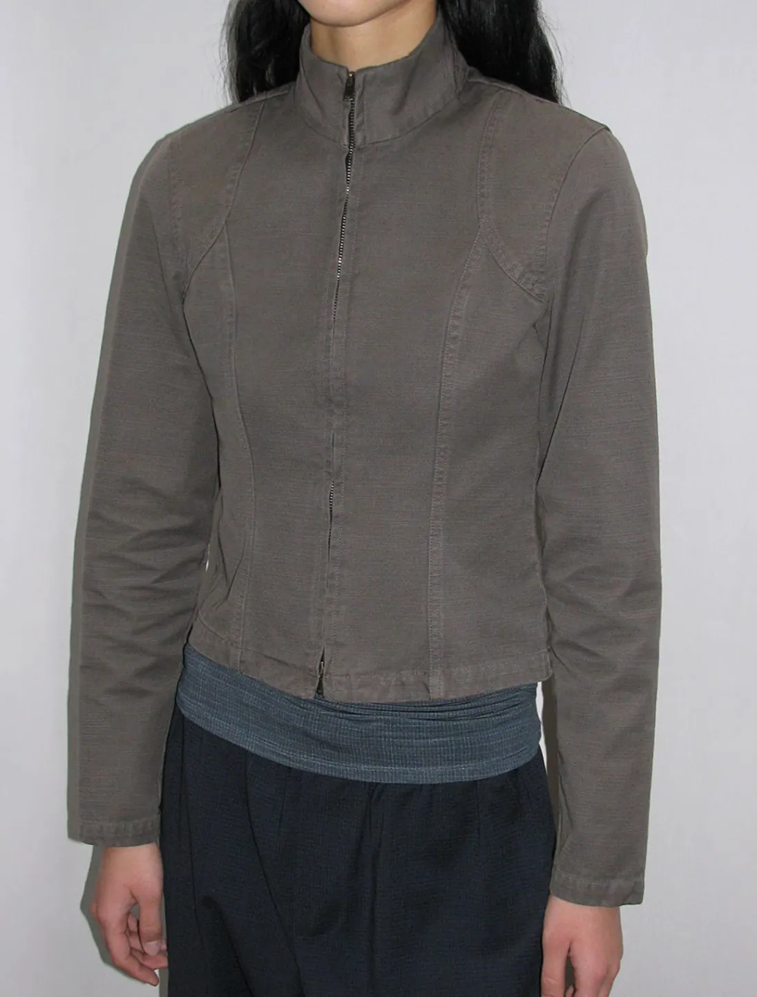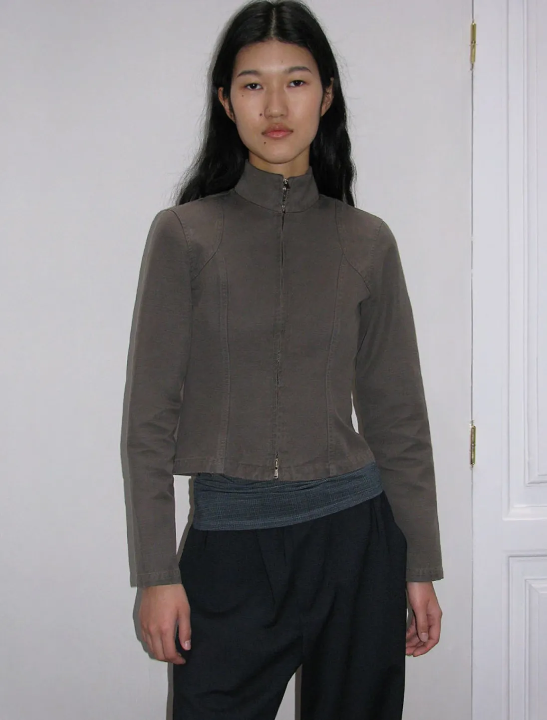 Højhalset Jakke I Vasket Effekt Med Lynlås Foran.