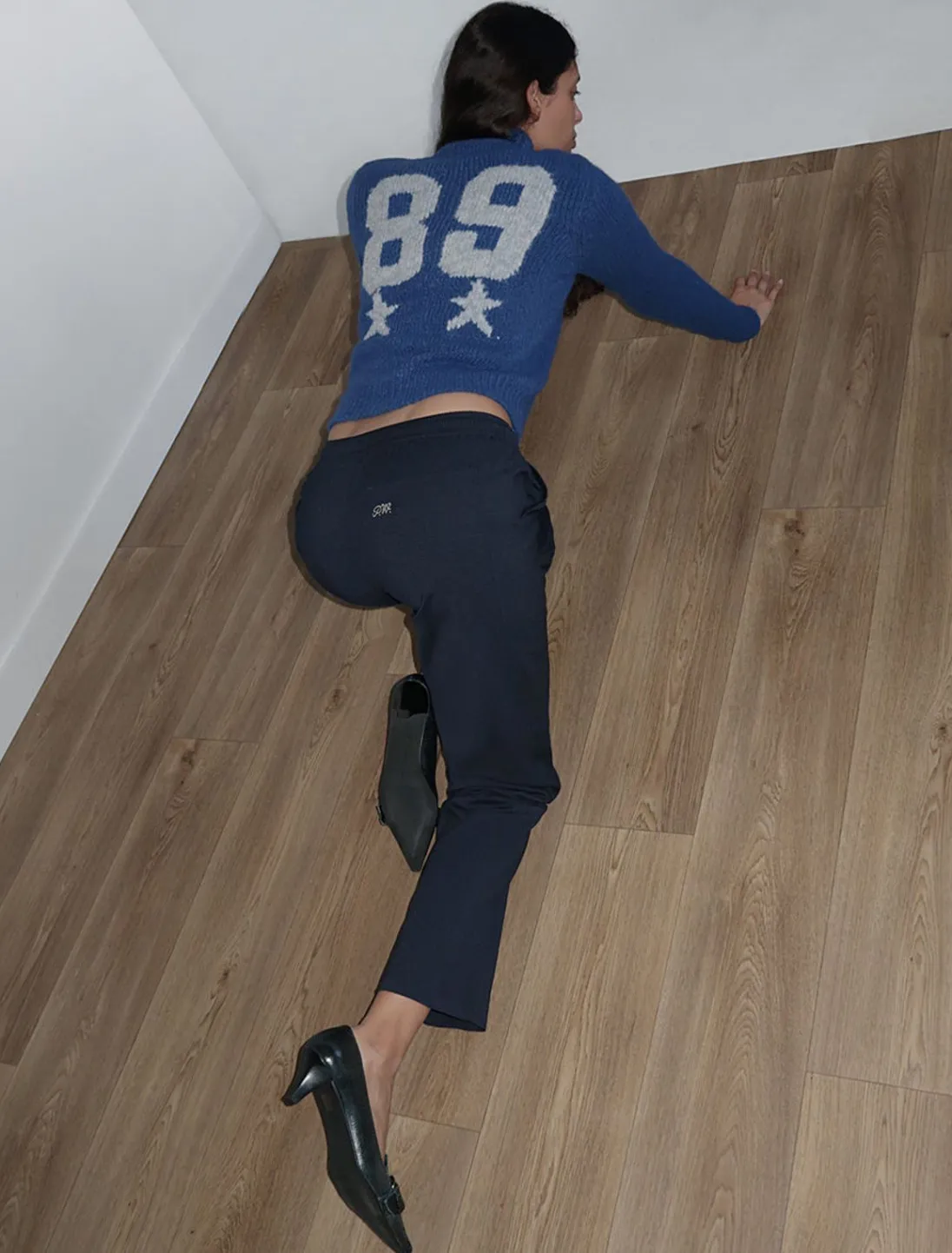 Blød Strik Cardigan Med ’89’ Intarsia På Ryggen.