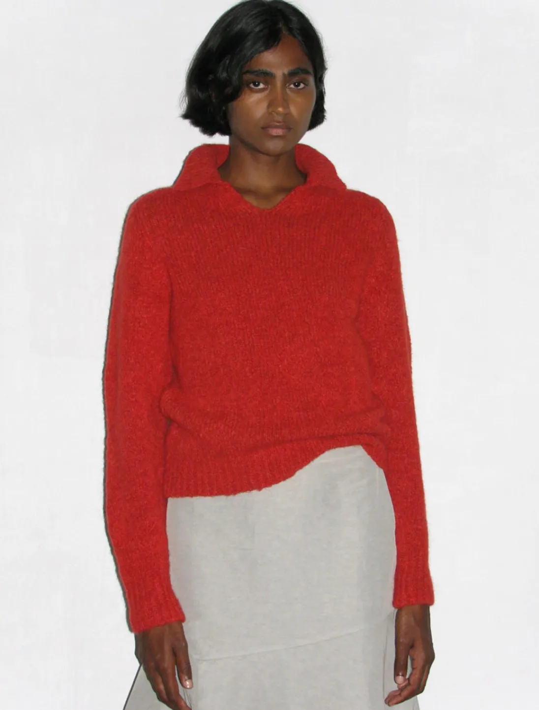 Vendbar, Blød Striktrøje Med 89 Intarsia Og Knappet Krave.