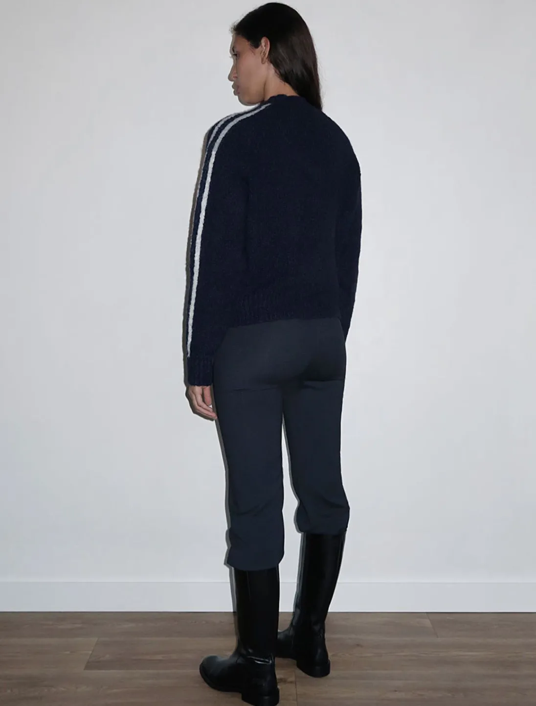 Blød Striktrøje Med Sports-Løbesømme På Ærmer.
