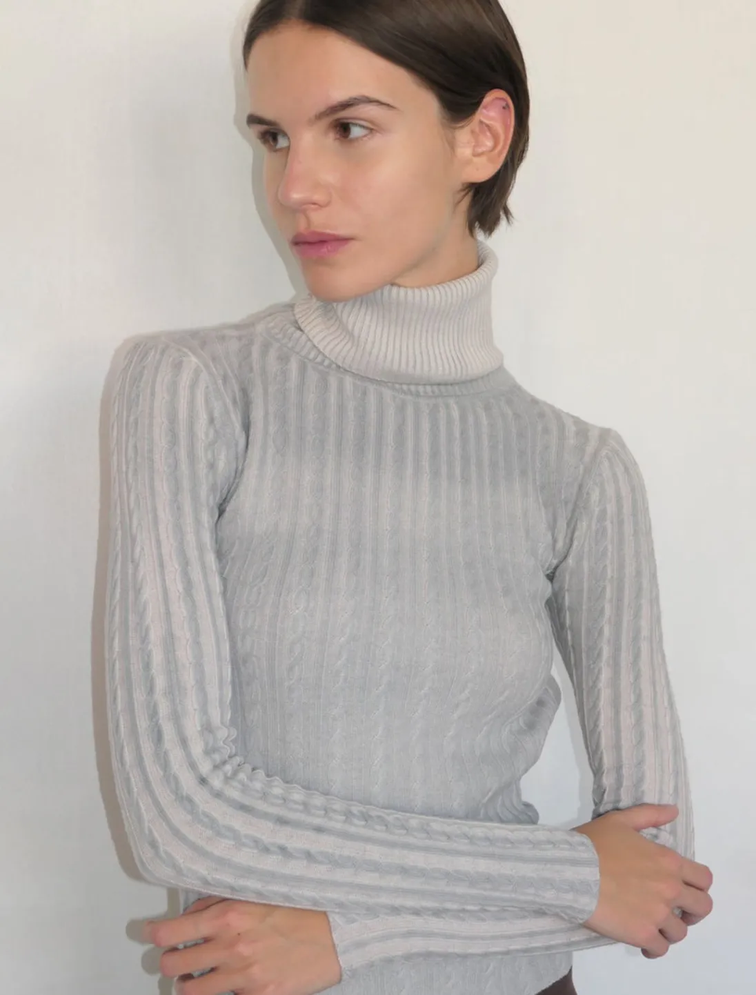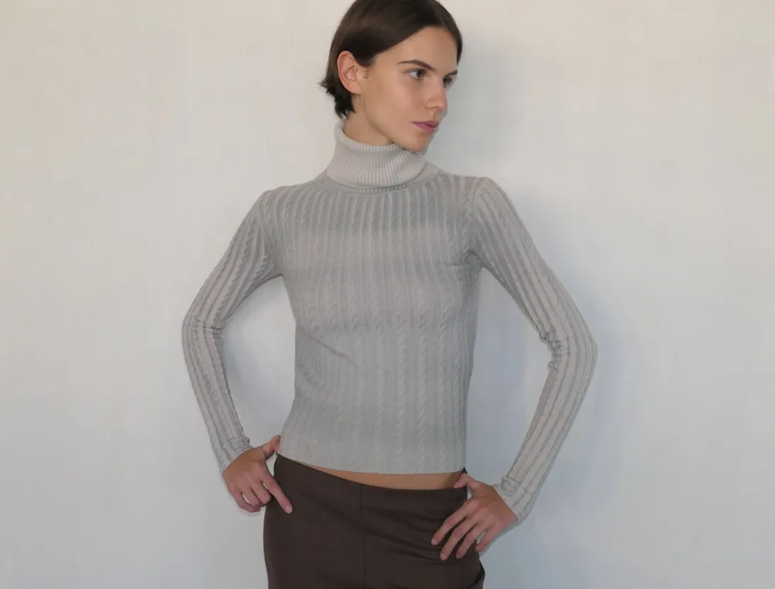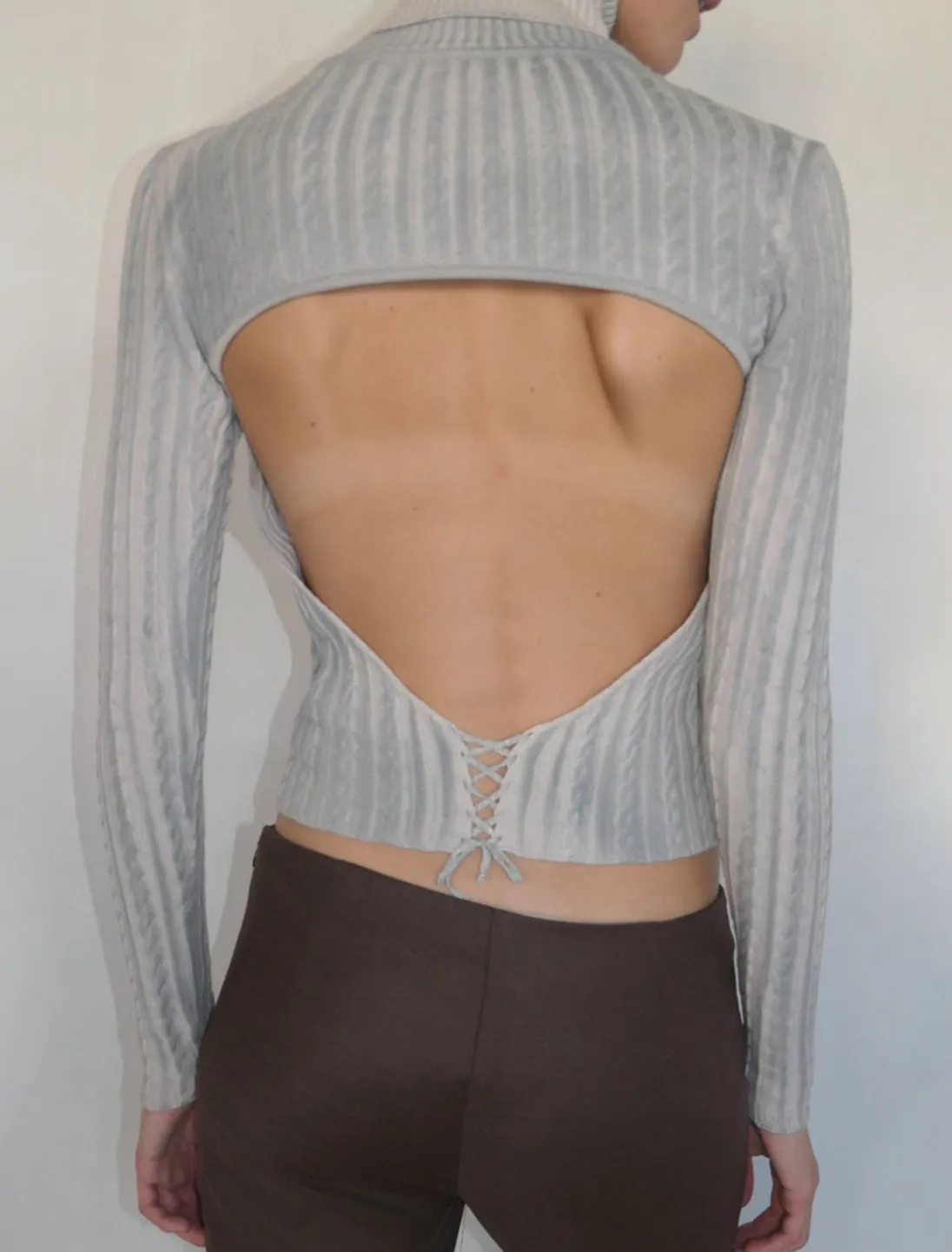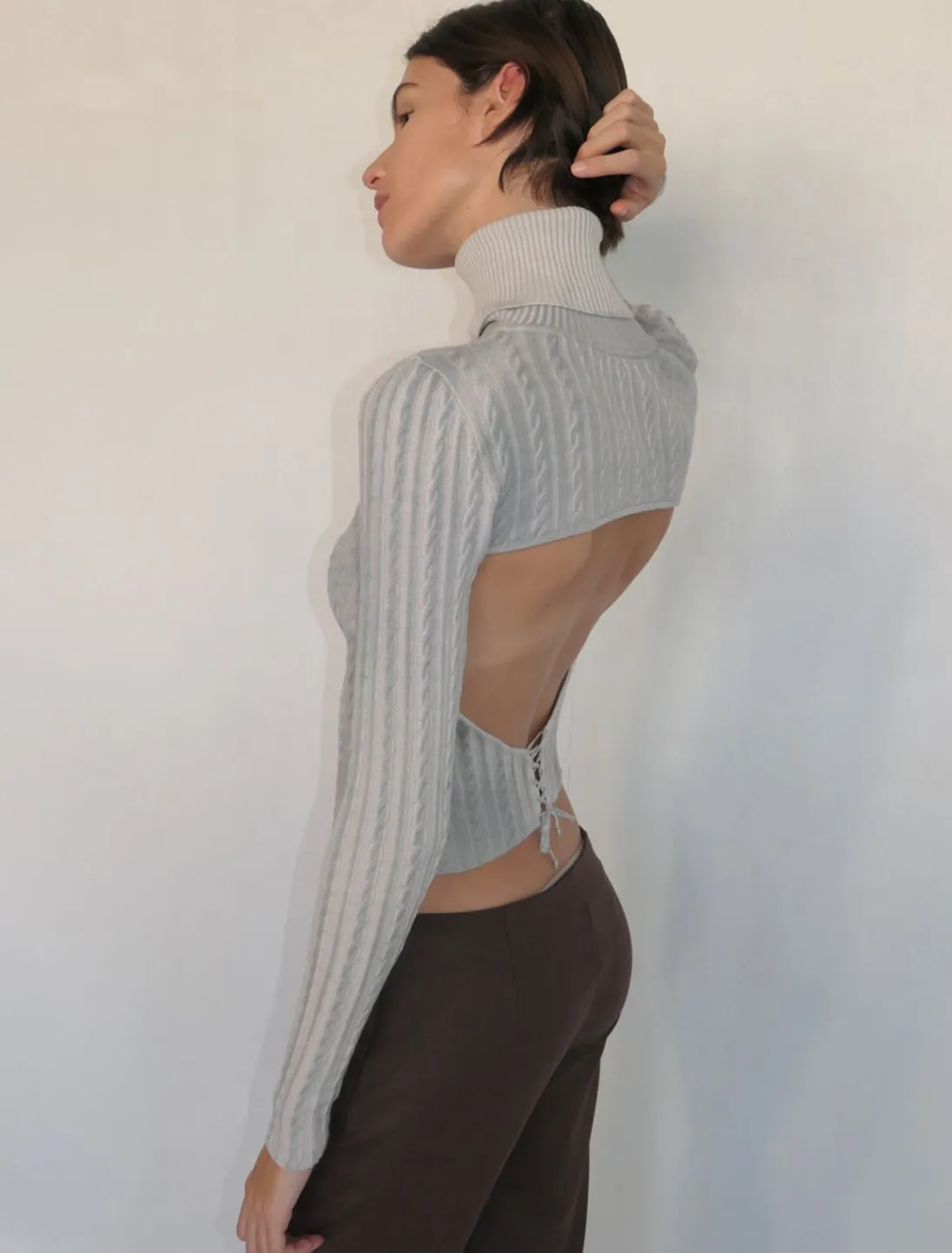 Langærmet Strikket Top Med Høj Hals Og Åben Ryg.