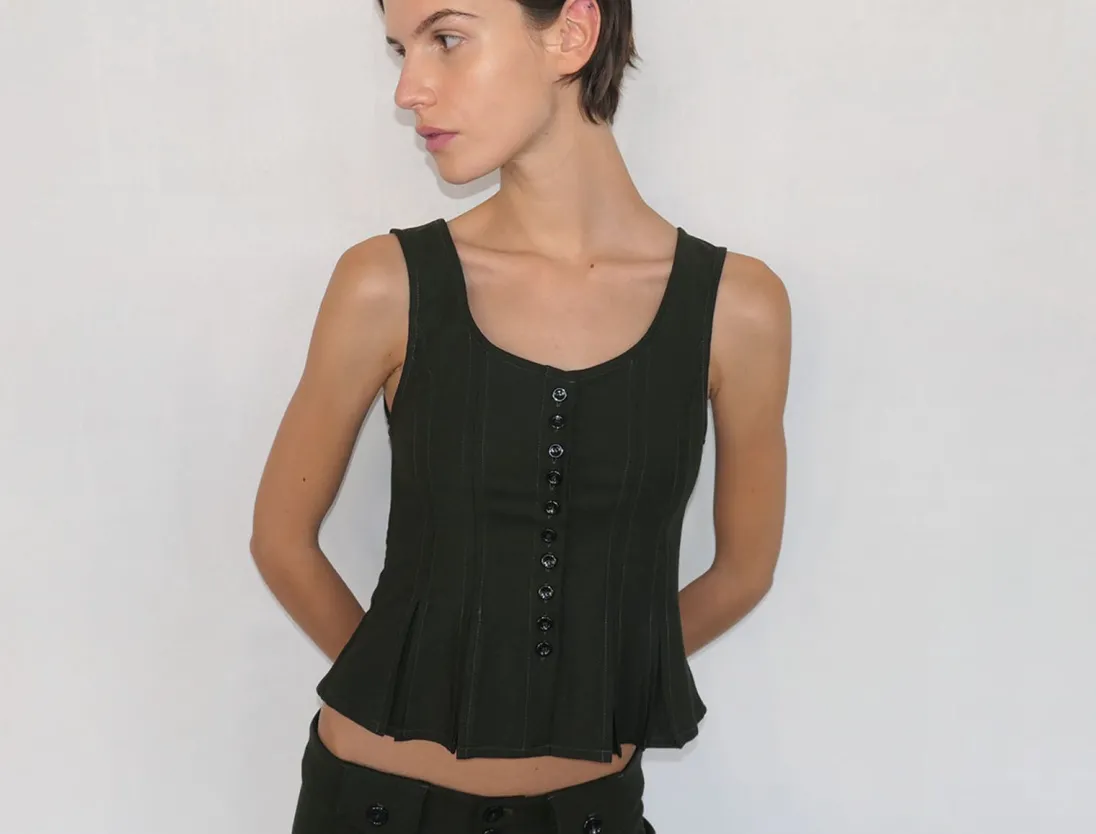 Utilpasset Top Med Godet-Kant Og Knapper Foran.
