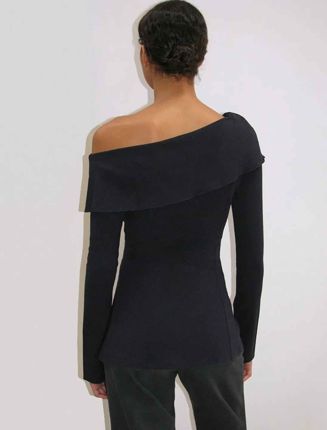 Langærmet, Elastisk Uldtop Med En Foldet Asymmetrisk Halsudskæring Og Detaljerede Slidser På Kropskant Og Manchetter.
