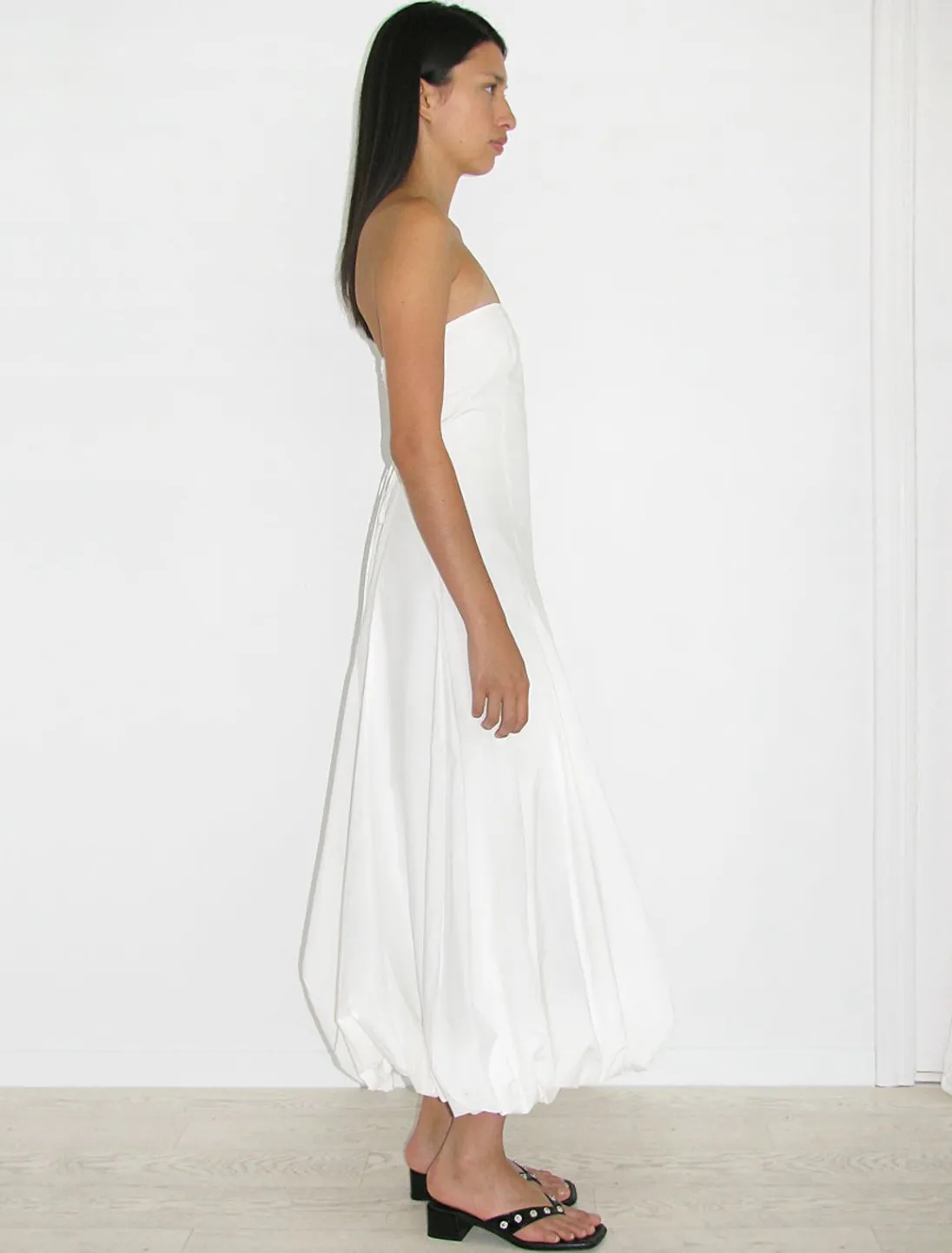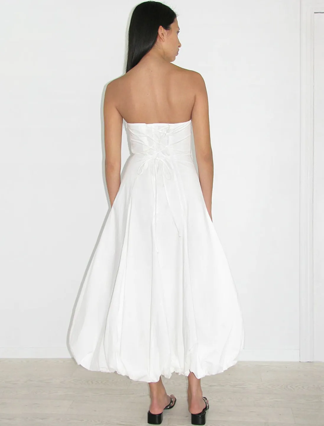 Stropløs, Lang Ballonkjole Med Justerbar Ryg Og Usynlig Lynlåslukning.