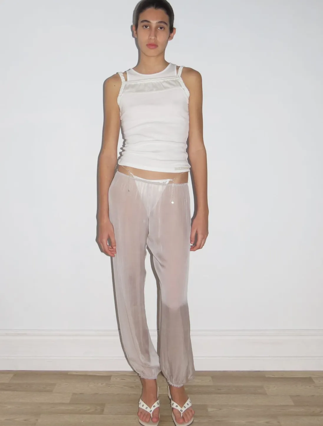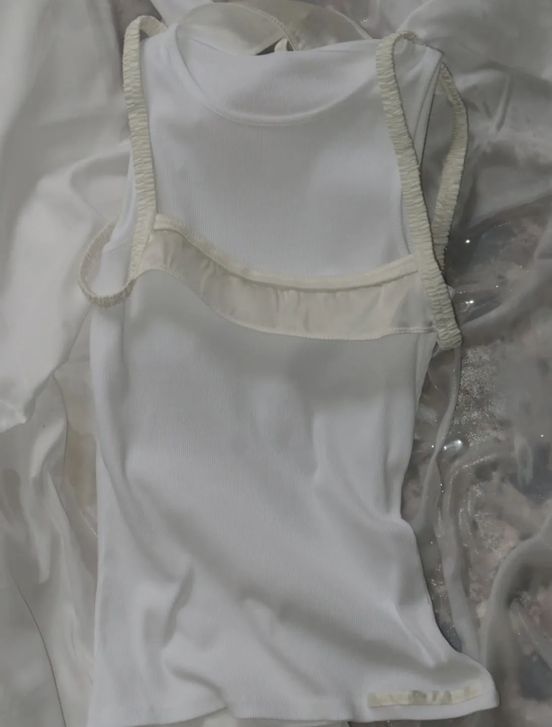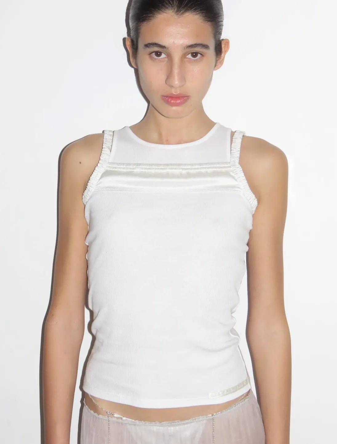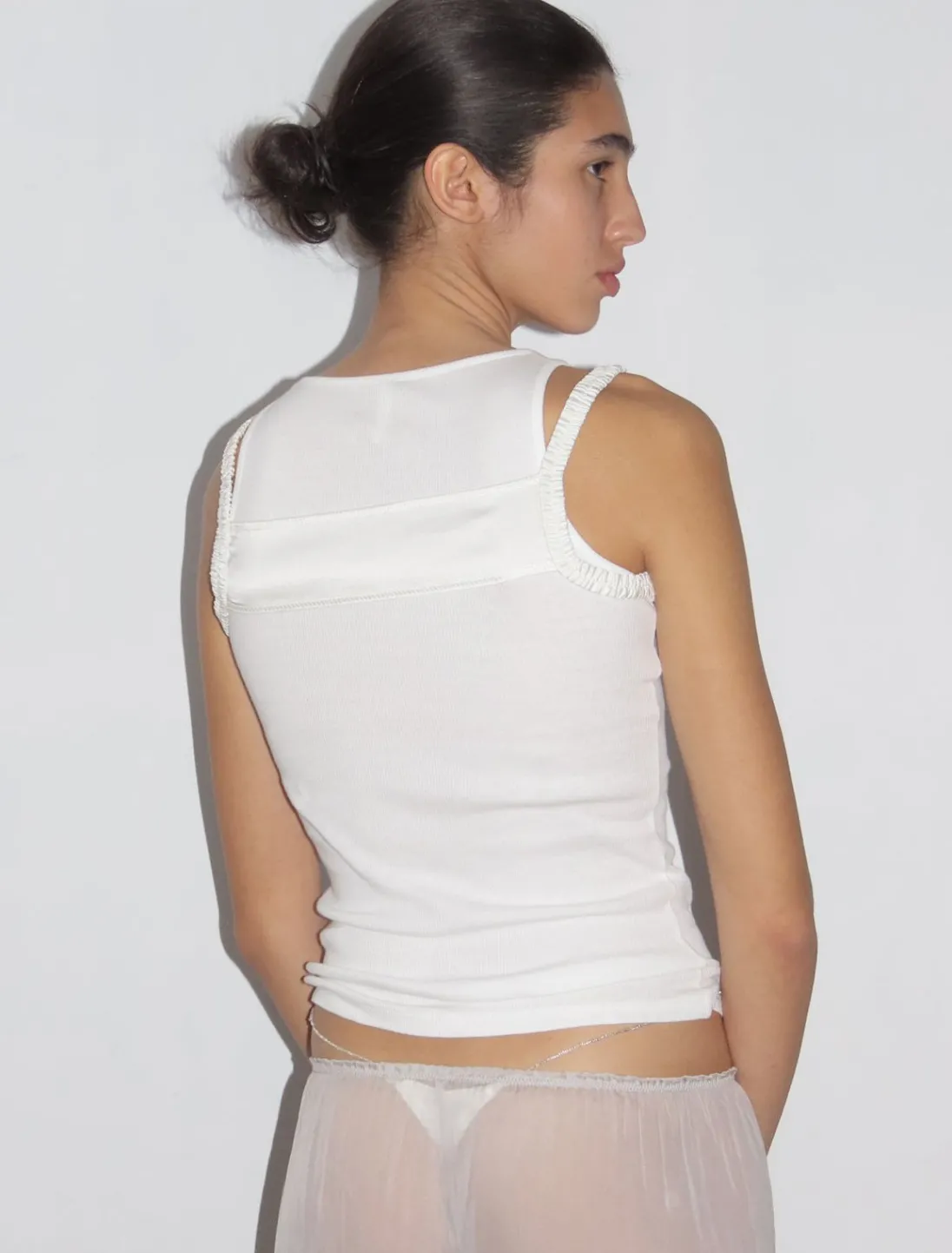 Todelt Ærmeløs Bomuldsribbet Tanktop Med Silkestropper På Toppen.