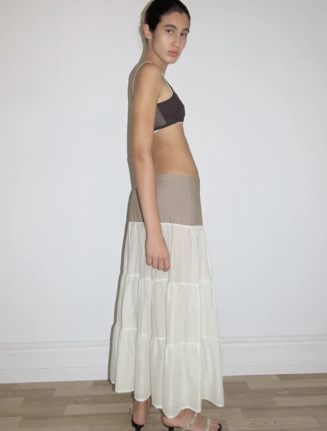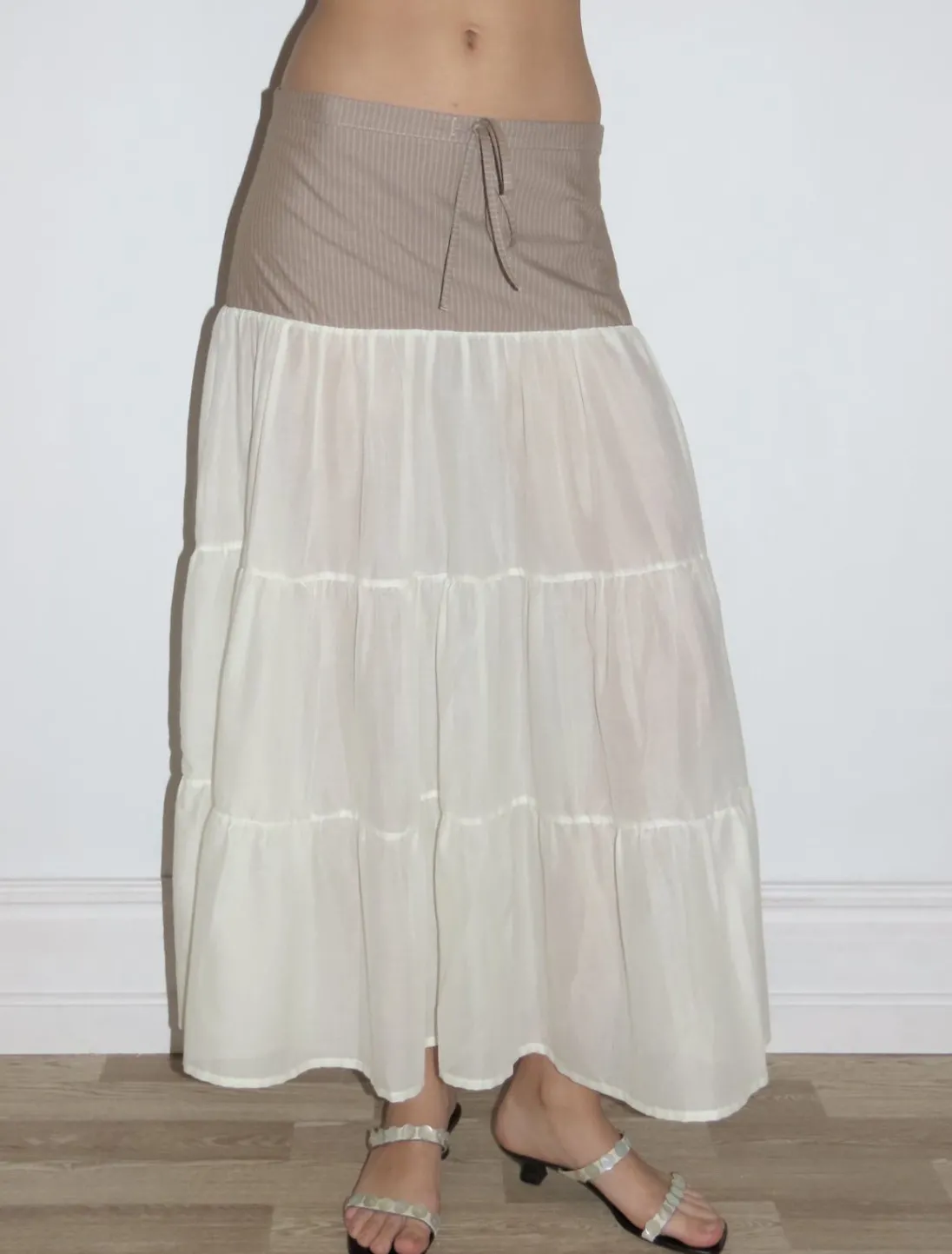 Den Øverste Del Er Lavet Af Stribet Stof, Og Bunden Er En Let Gennemsigtig Voile.