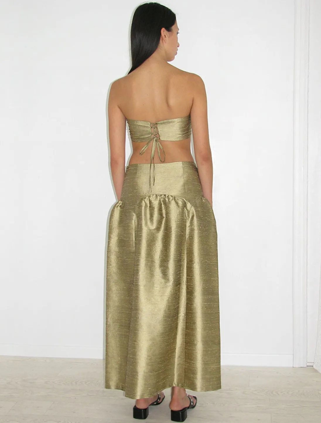 Puffy Nederdel I Silke Med Lav Talje.