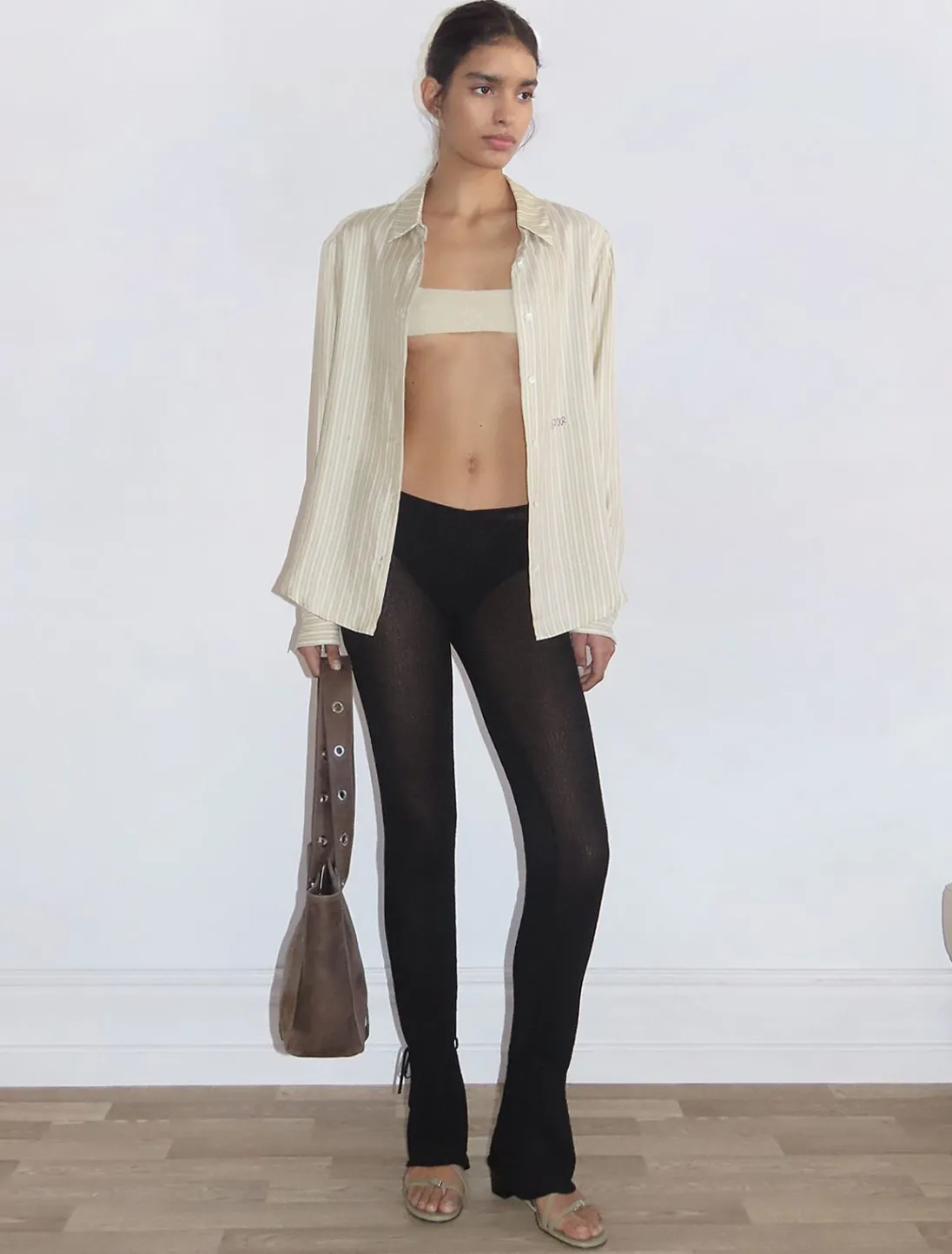 Fastsiddende, Lavtaljede Strikbukser Med Elastikbånd I Bunden Af Benet.