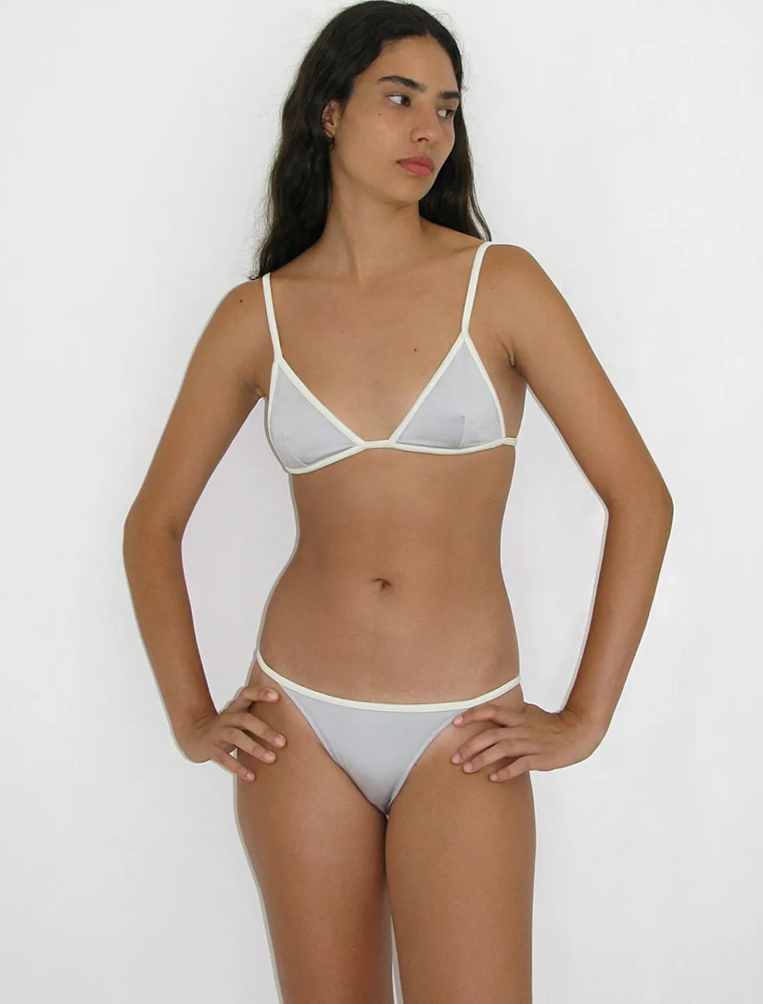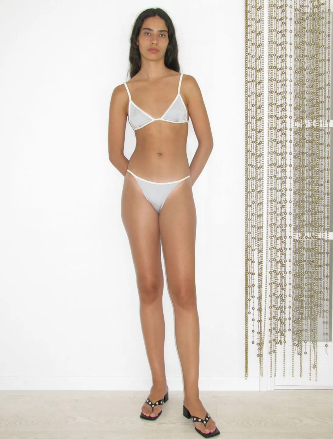 Sølv Bikiniunderdel Med Kontrasterende Hvid Kant.