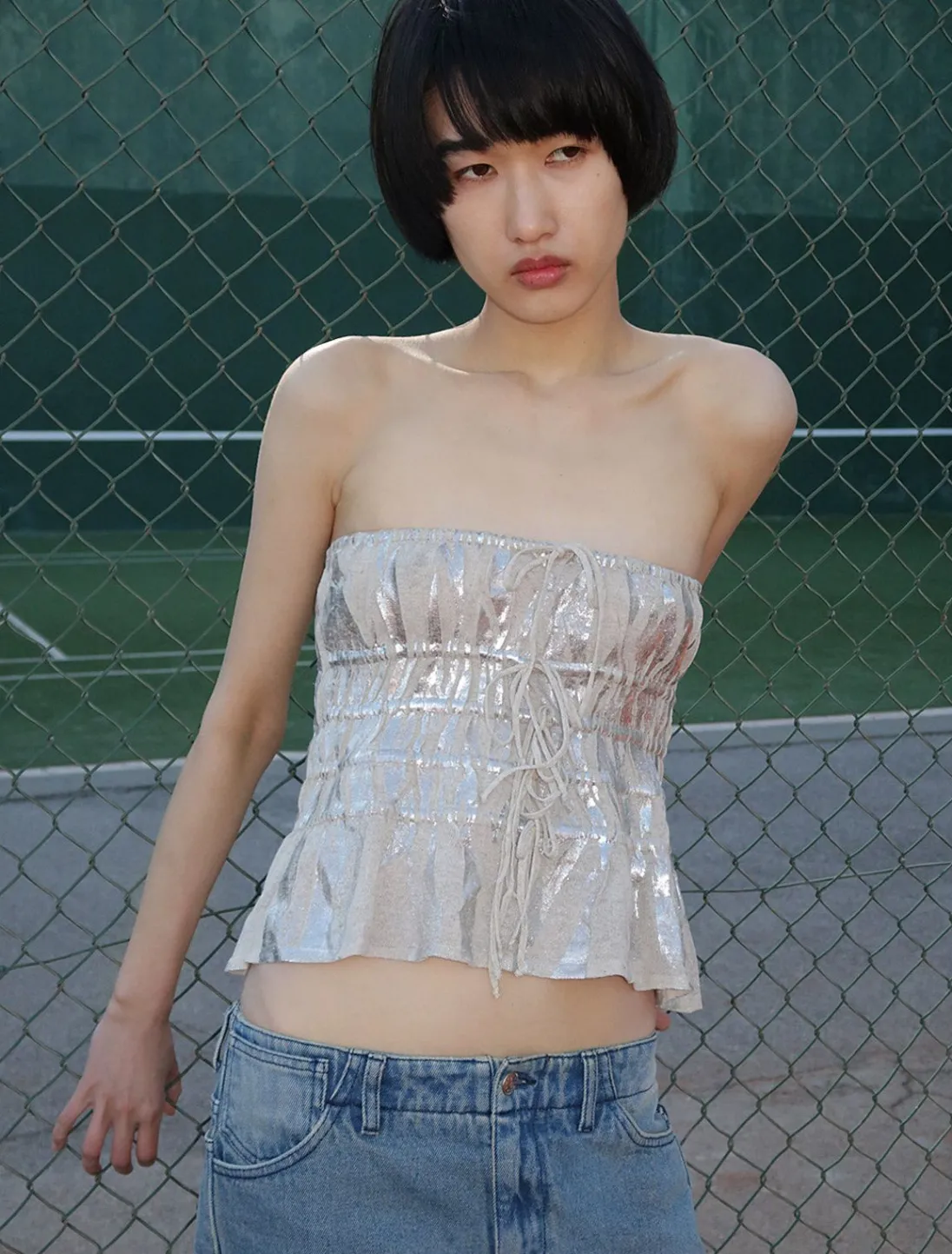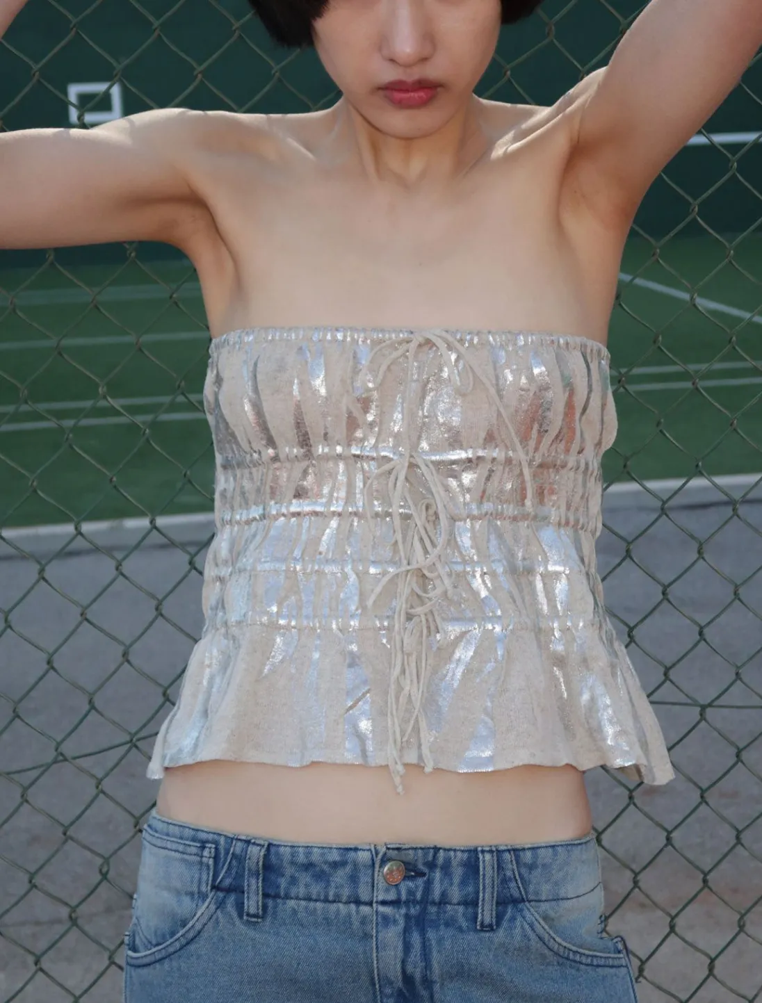 Bandeau Med Samlebånd Og Krakeleret Folietryk.