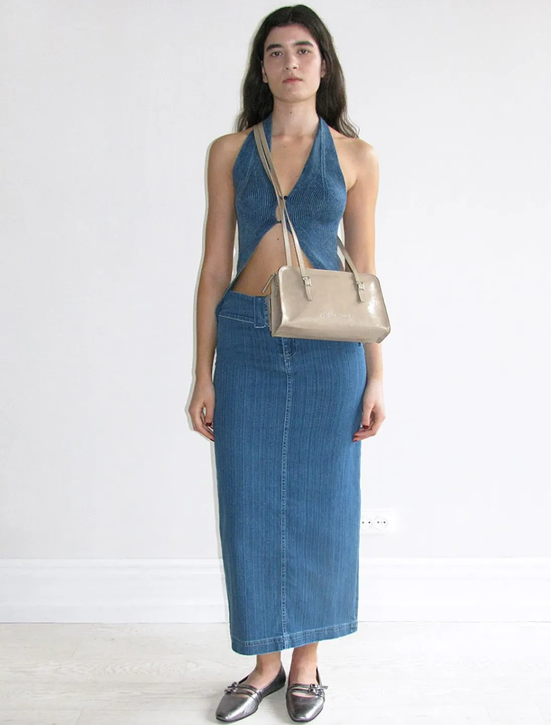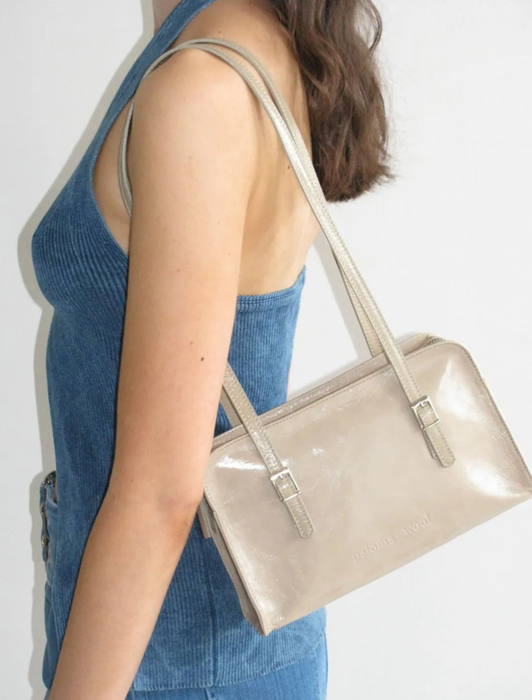 Skinny Lædertaske Med Indgraveret Logo. Indvendig Lomme.