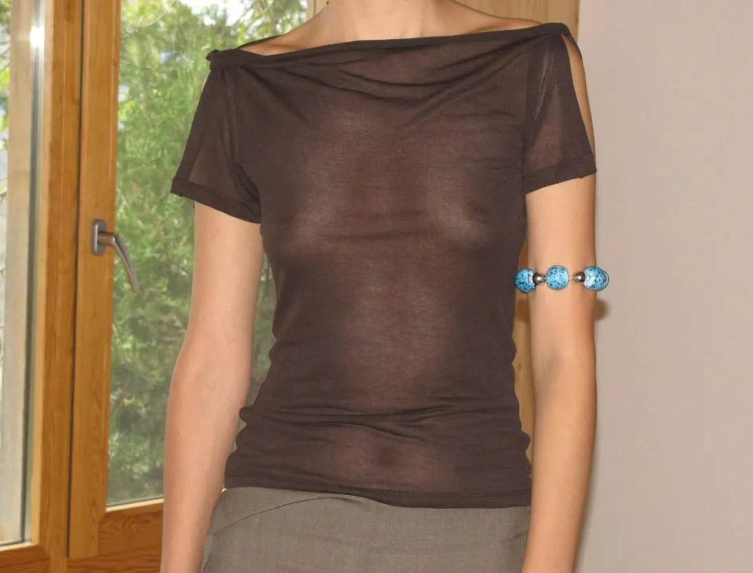Delikat, Let Gennemsigtig Top Med Snoede Og Åbne Ærmer.