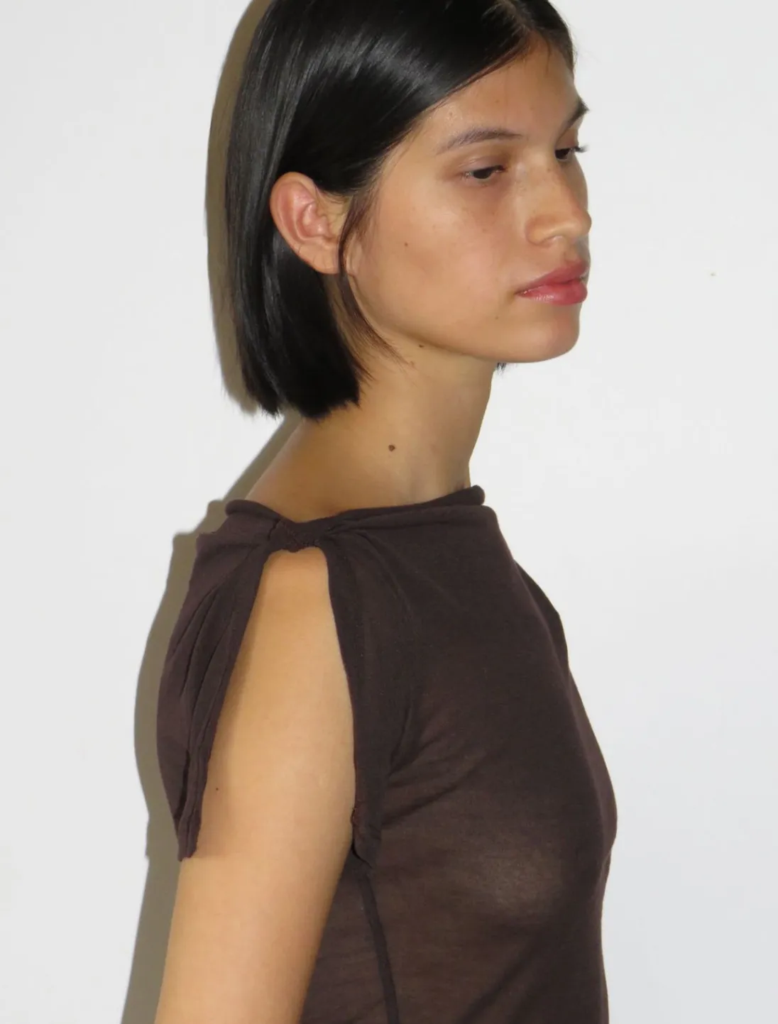 Stofet Har En Blød Håndfornemmelse, Der Minder Om Crepe, Lavet Af Bomuldsjersey.Farve Brun.