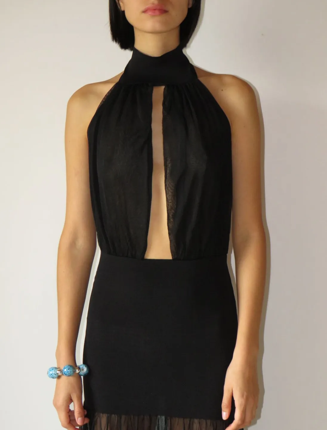 Delikat, Gennemsigtig, Strikket Grimekjole Med Asymmetrisk Bund.