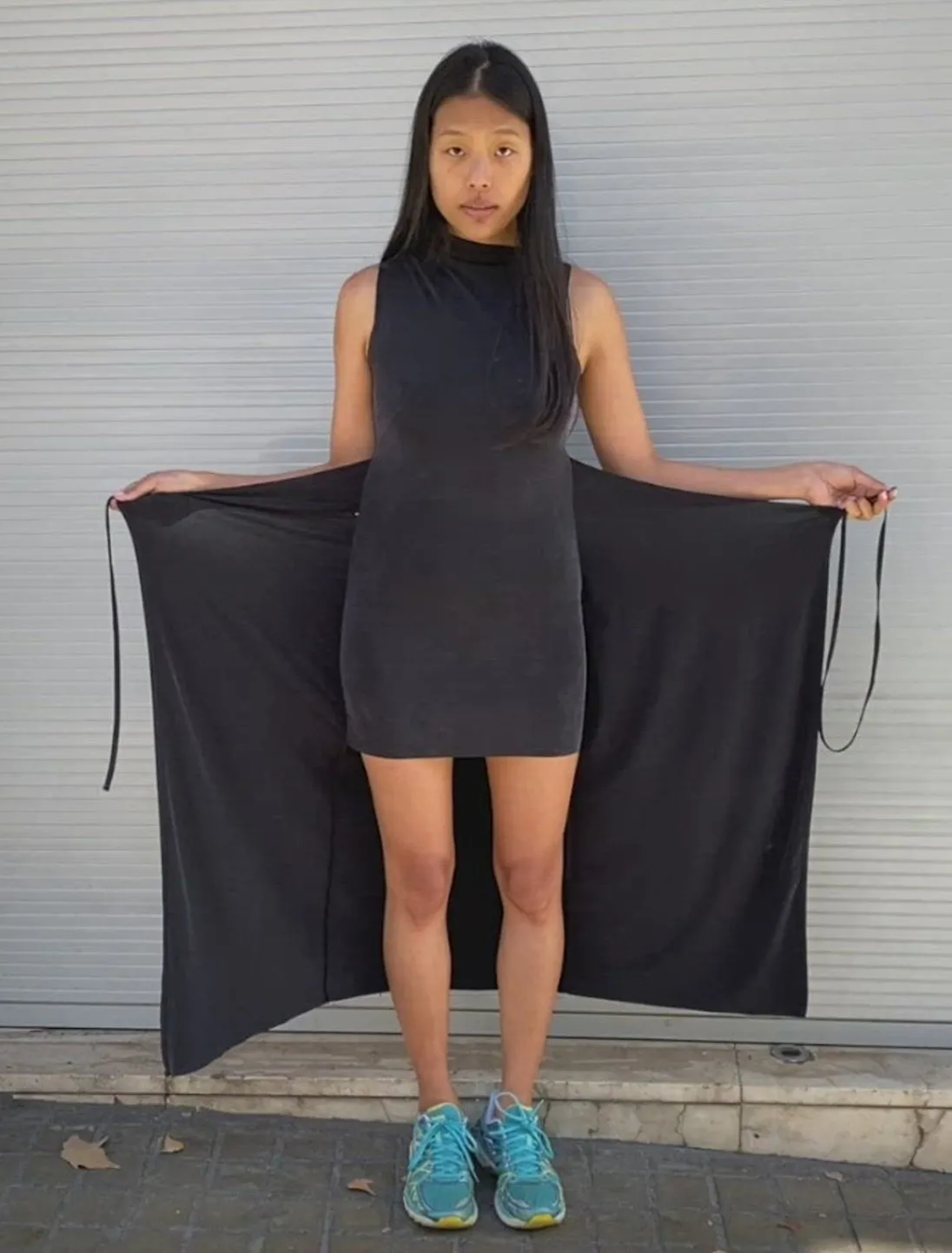 Den Er Designet Som En Kort Kjole Med Et Ikke-Aftageligt Stof Omkring Sig. Det I Et Langt Stykke.