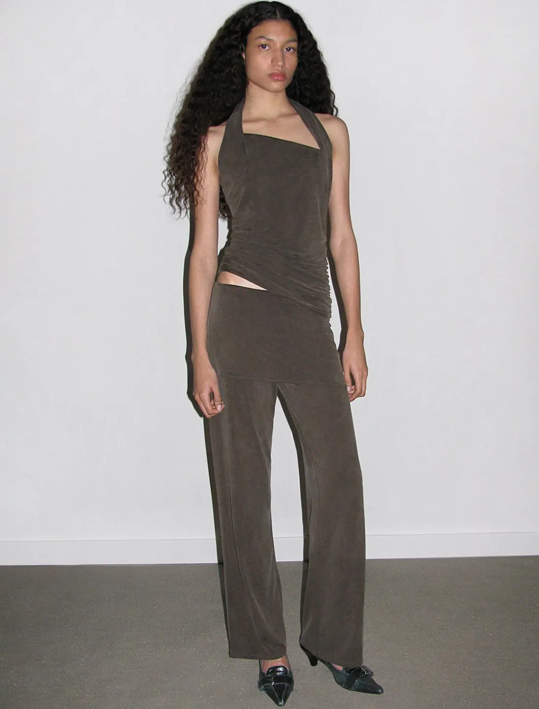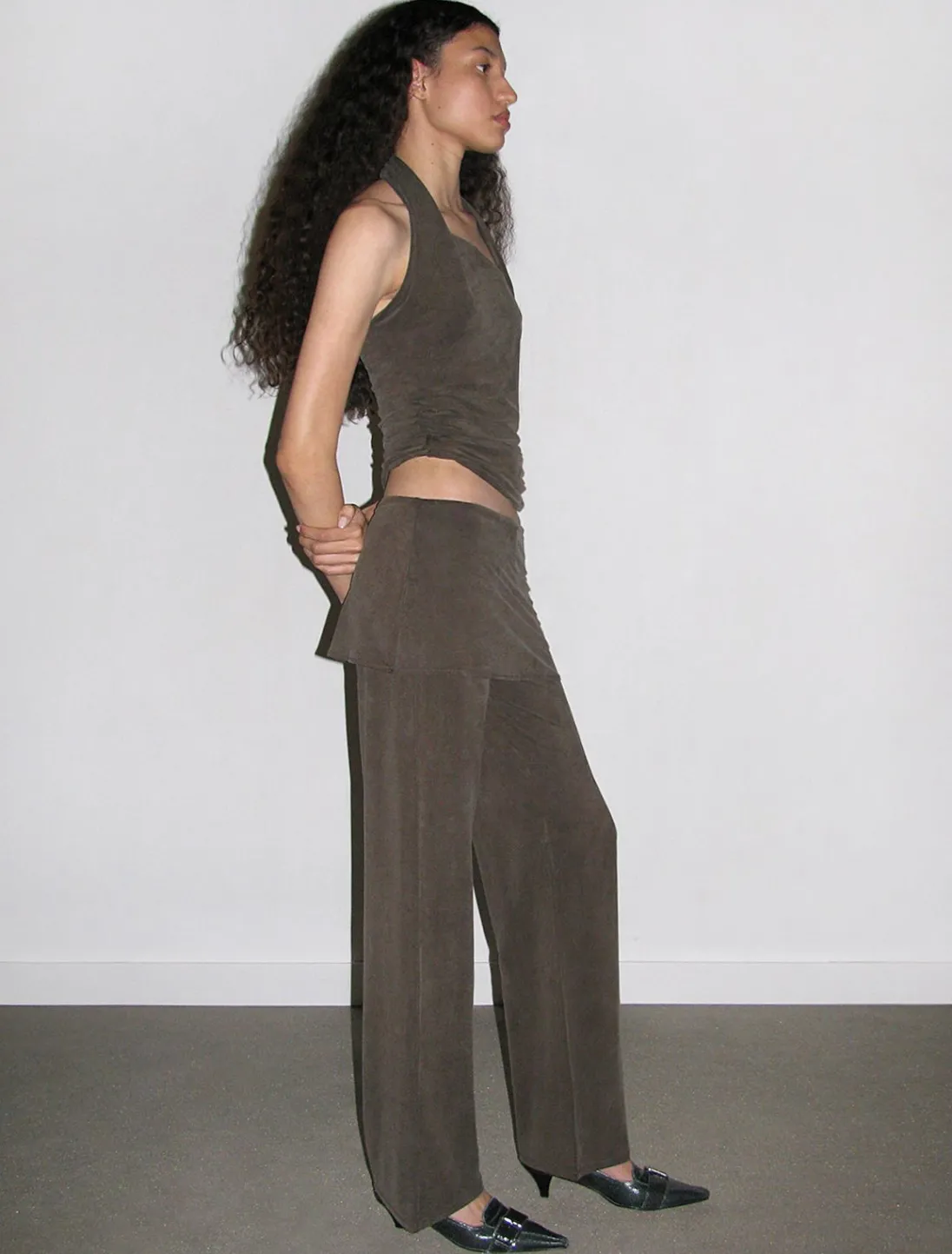 Lavtaljede Cupro-Bukser Med En Indbygget Mini-Nederdel-Detalje (Ikke-Aftagelig) Med Laserskåret Kant.