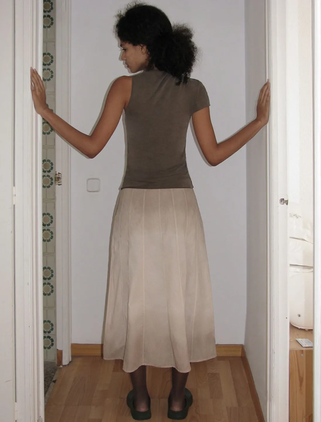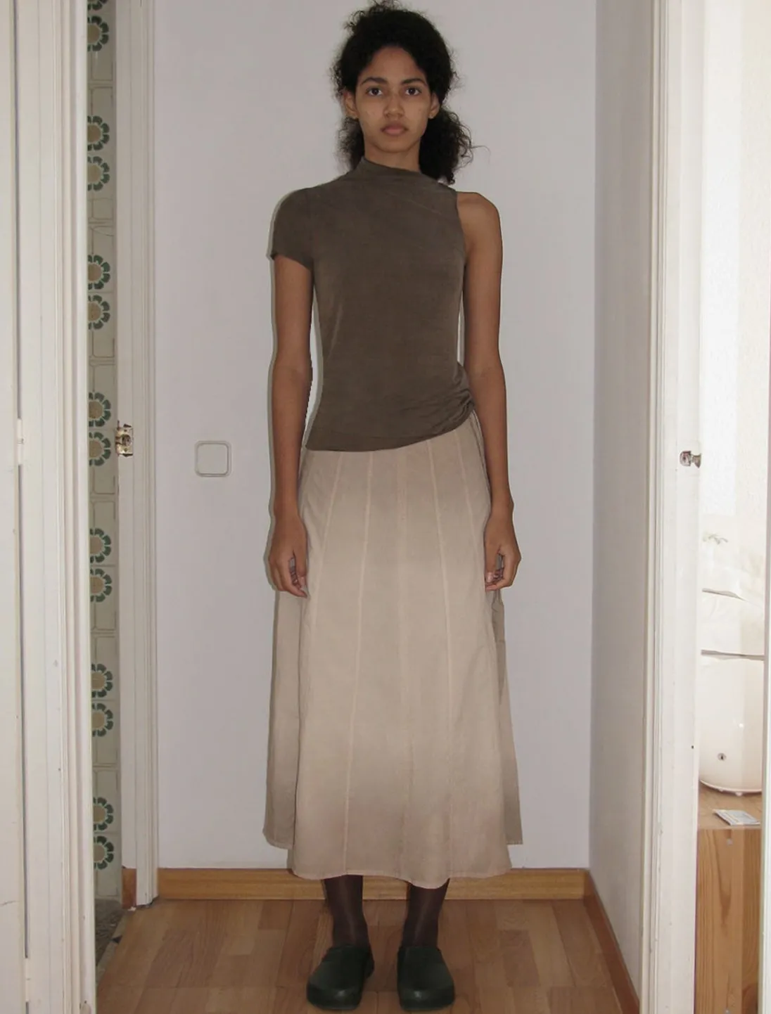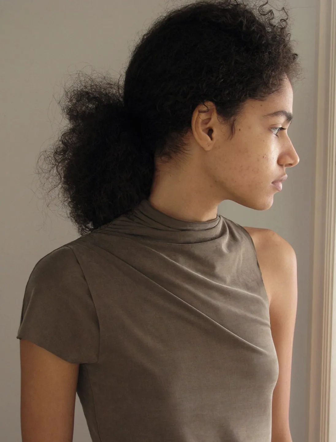 Dobbeltlags, Asymmetrisk Ærme, Blød Hals Cupro Top Med Laserskårne Kanter.