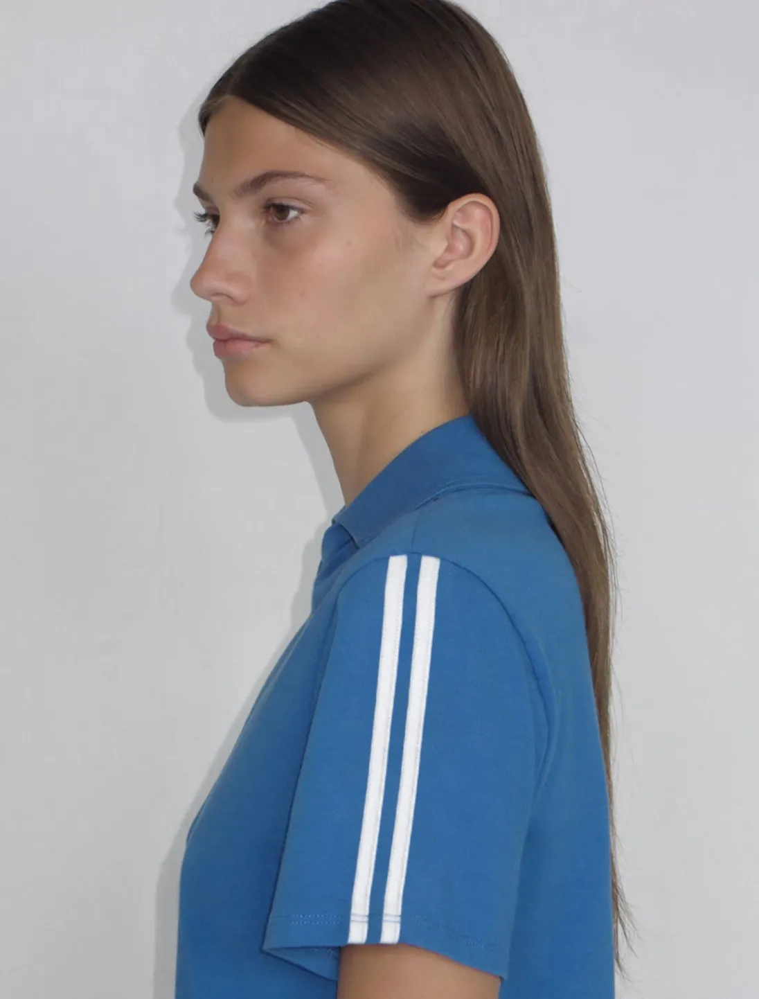 Retro T-Shirt Med Polo-Hals Med Sportslig Piping På Ærmerne.
