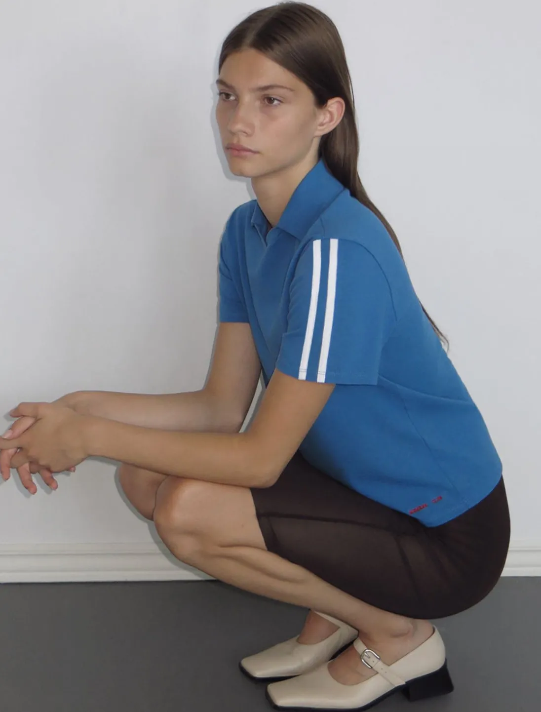 Retro T-Shirt Med Polo-Hals Med Sportslig Piping På Ærmerne.