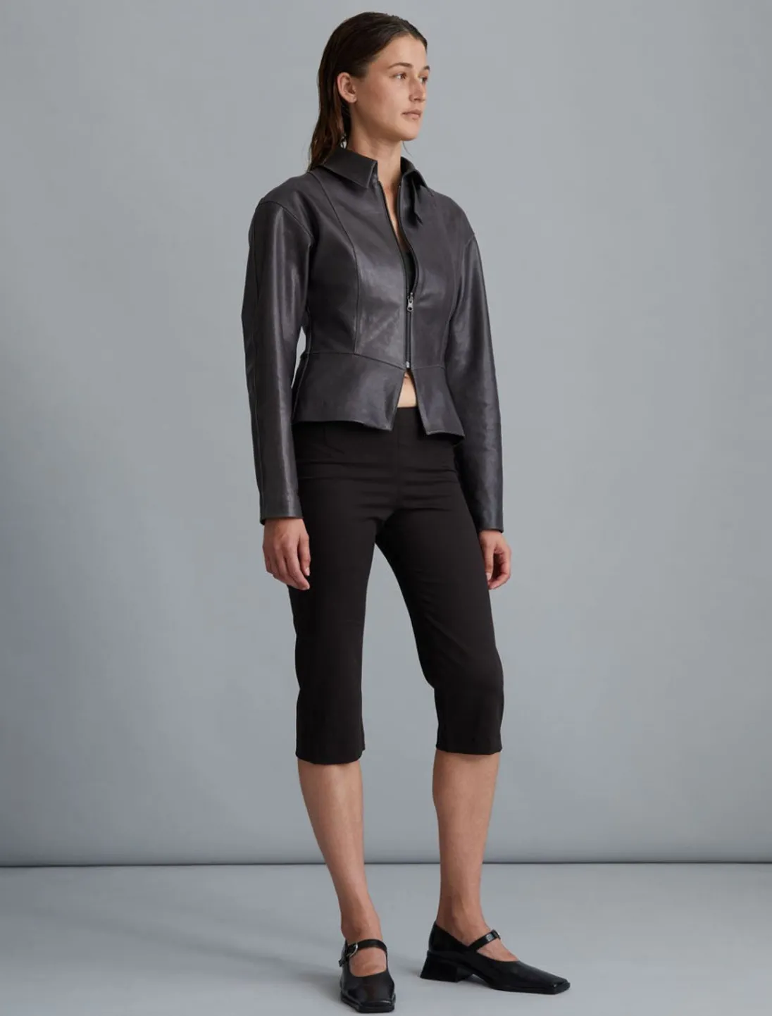 Skræddersyet, Slidt Læder, Monteret Talje Læderjakke Med Brede Albueærmer Og Tilpassede Manchetter.