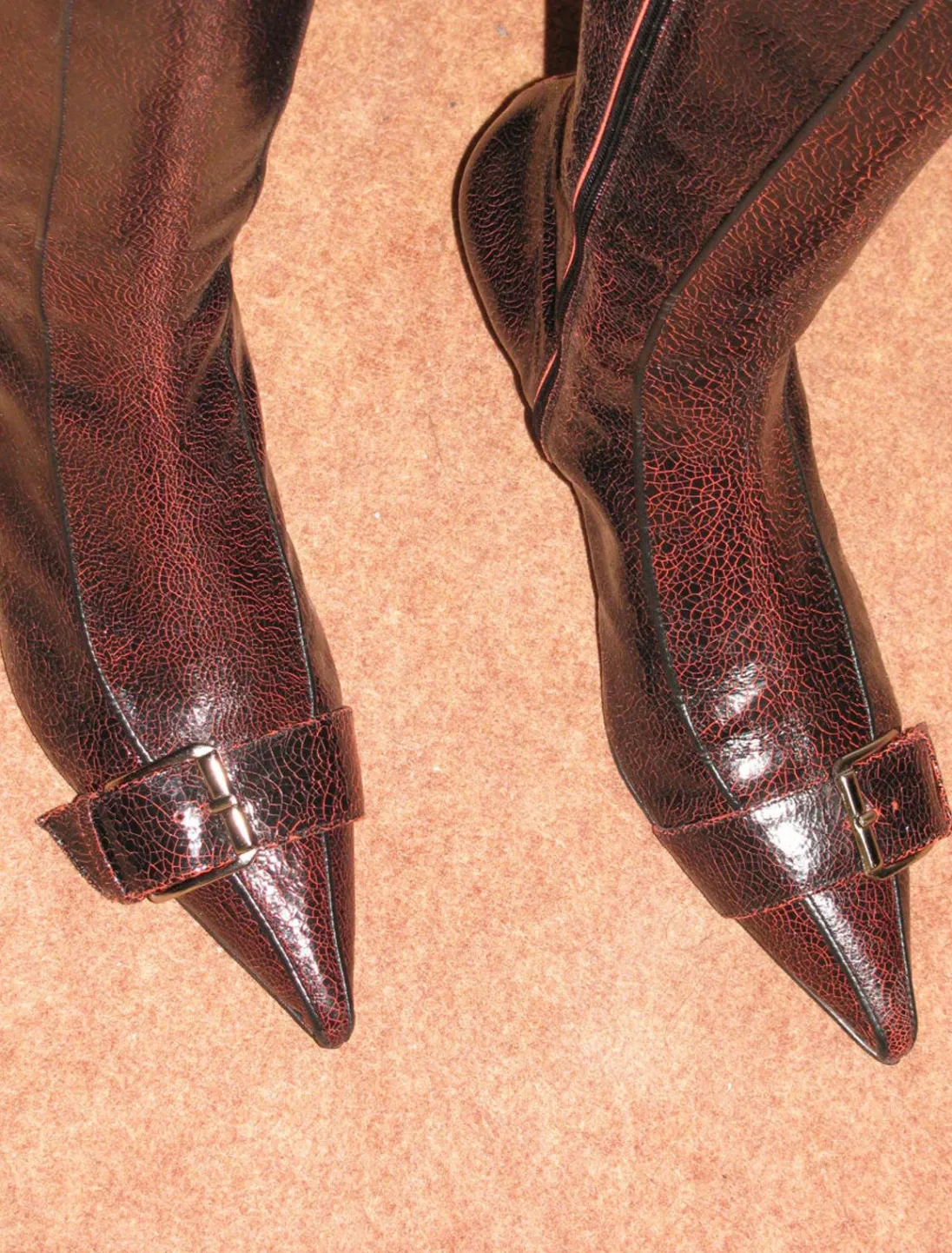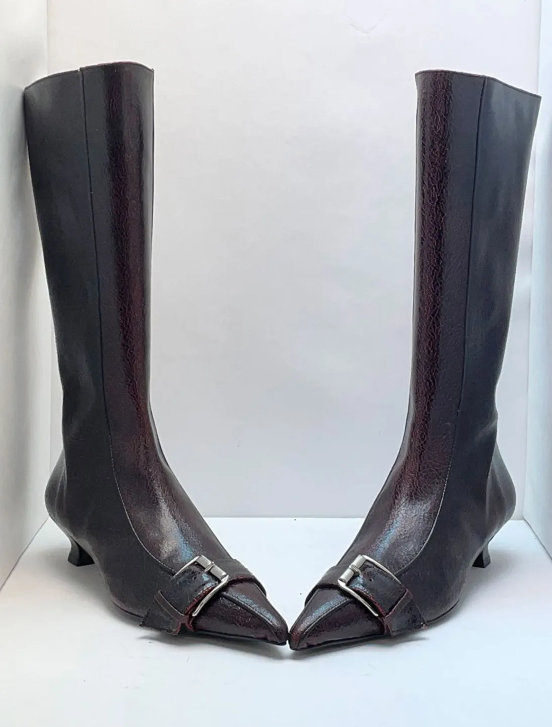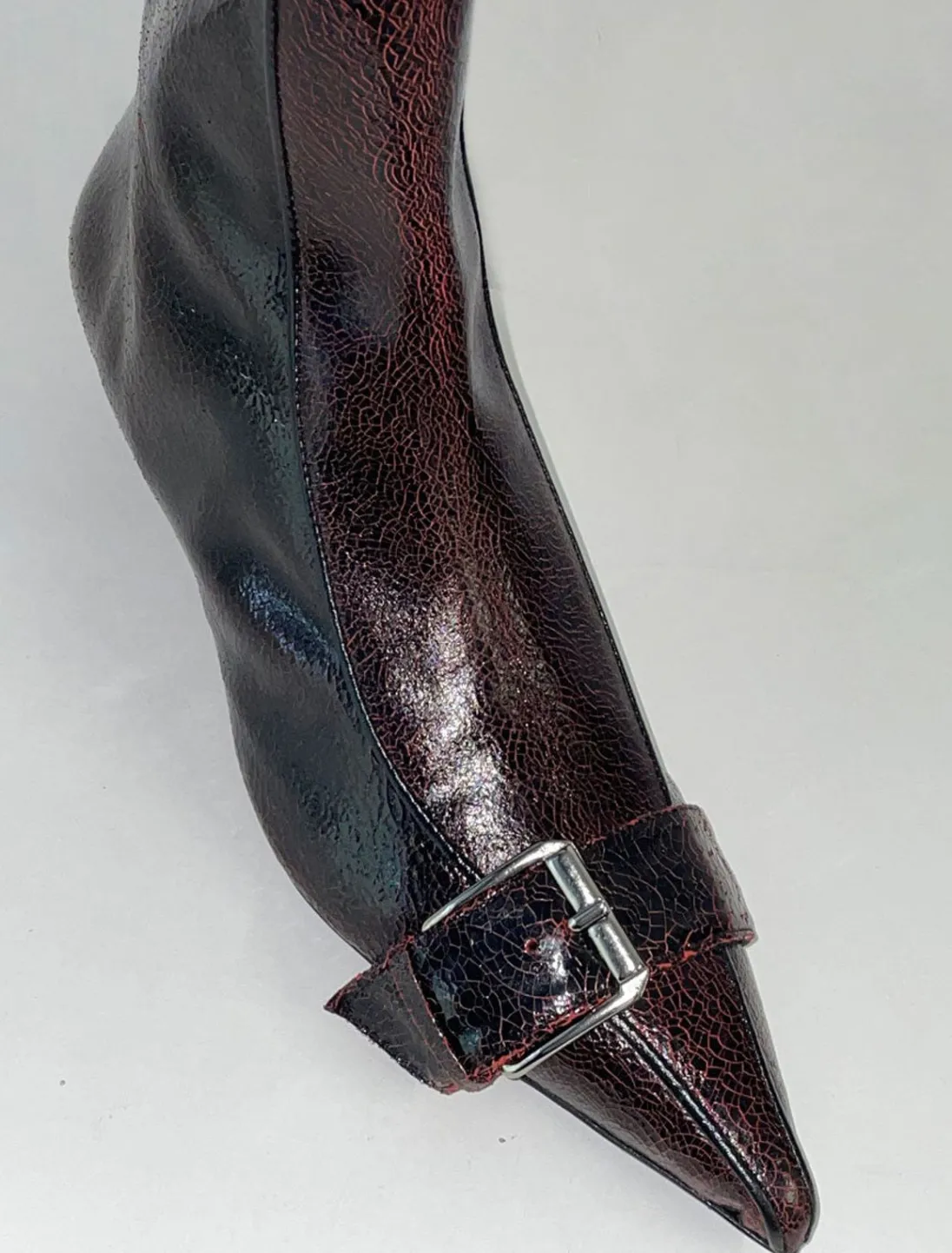 Læderstøvle Med Spids Spændetå. 3 Cm Keglehæl.