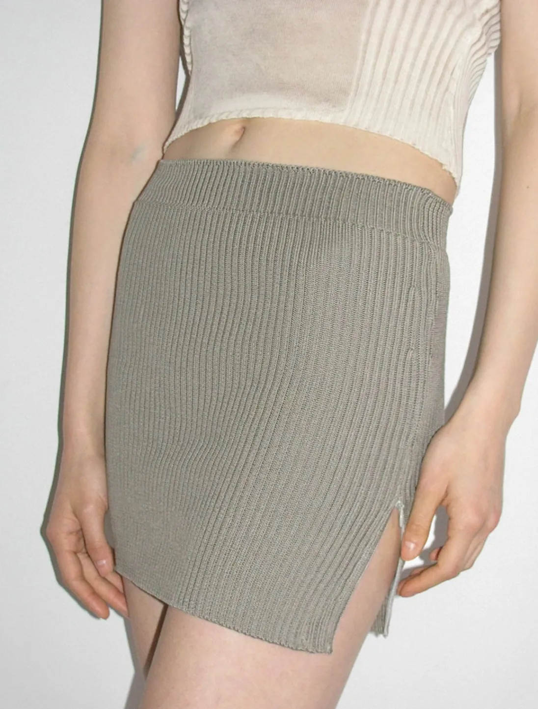 Økologisk Bomuldsstrikket Mininederdel Med Lynlås I Siden.