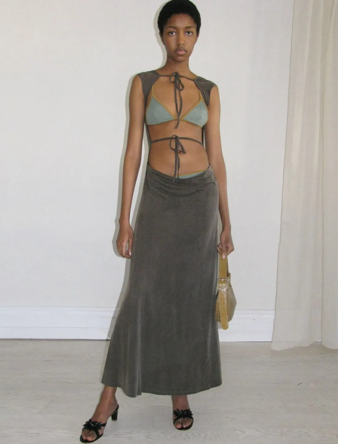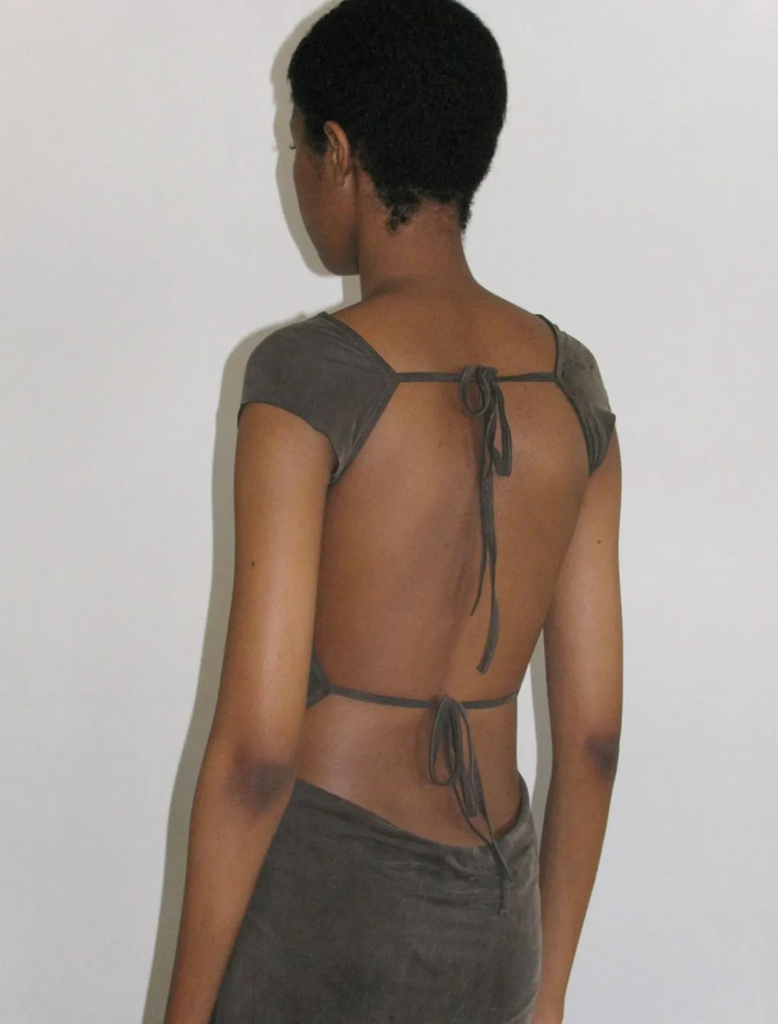 Vendbar Cupro-Kjole Med Åben Ryg Og Draperet Bund.