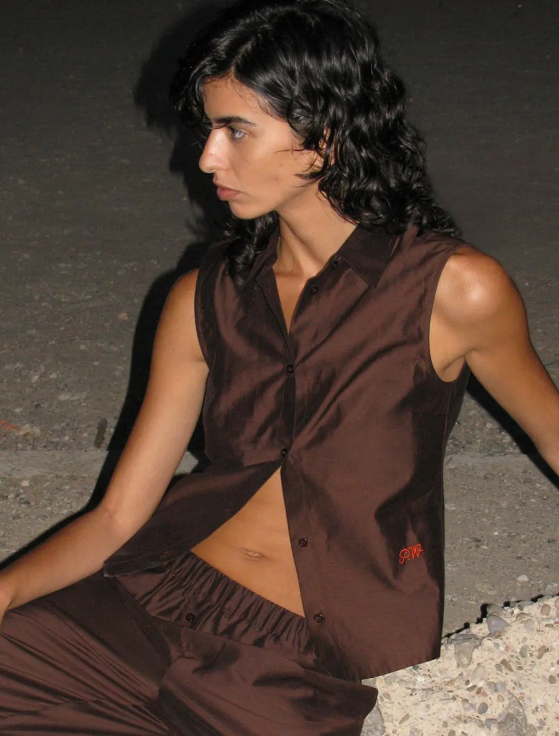 Delikat Skjortekravetop Med Knappning Foran Og Pw-Broderi.