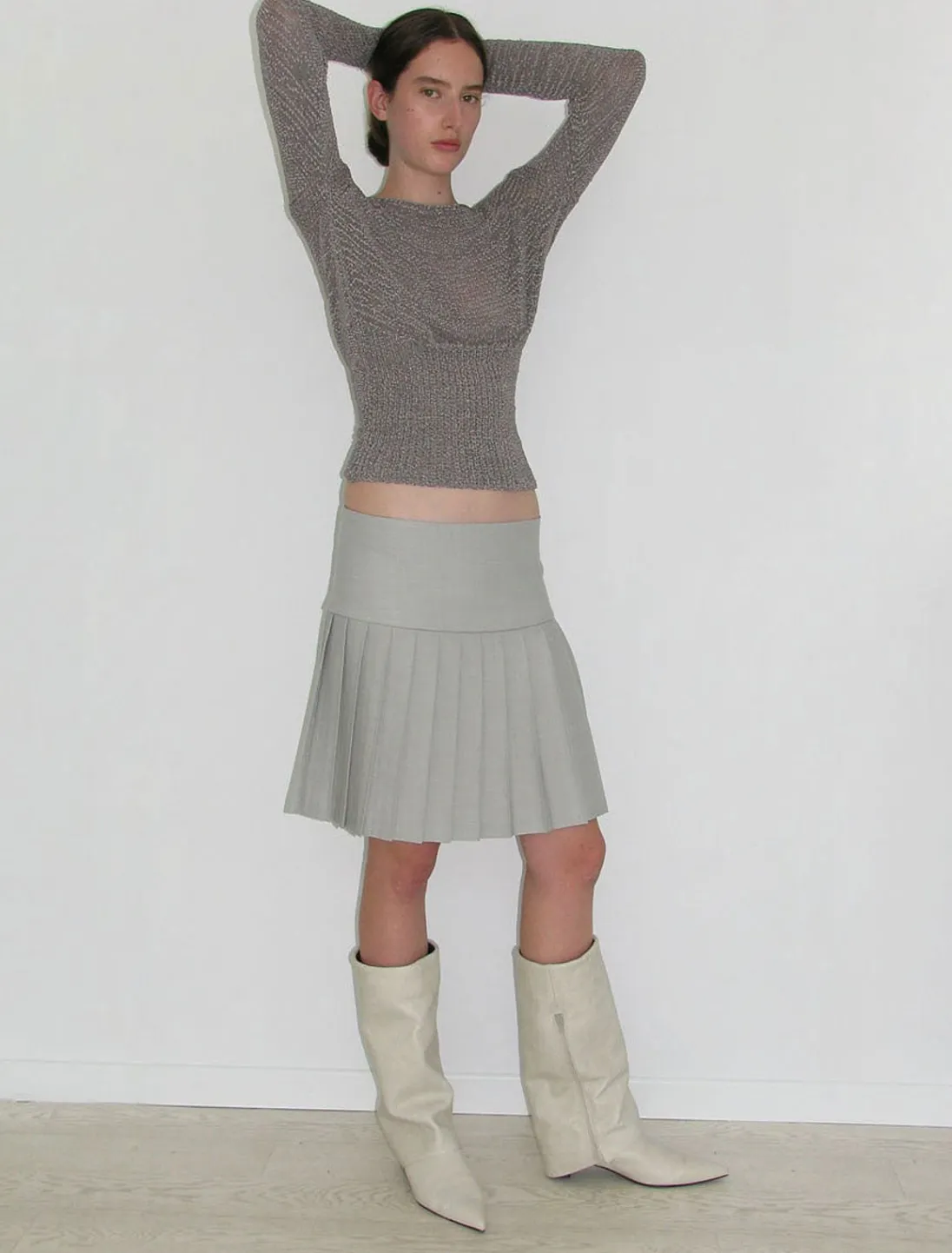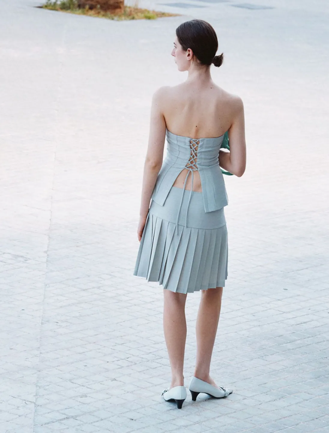 Plisseret Nederdel Med Lav Talje Og Lynlåslukning I Siden.
