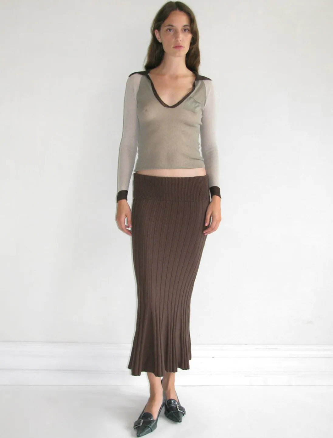 Udvidet Strikket Lang Nederdel Lavet Af Et Blødt Garn.