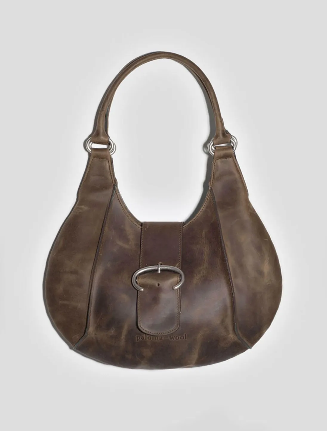 Afrundet Læderskuldertaske Med Spændedetalje Og Magnetlukning.