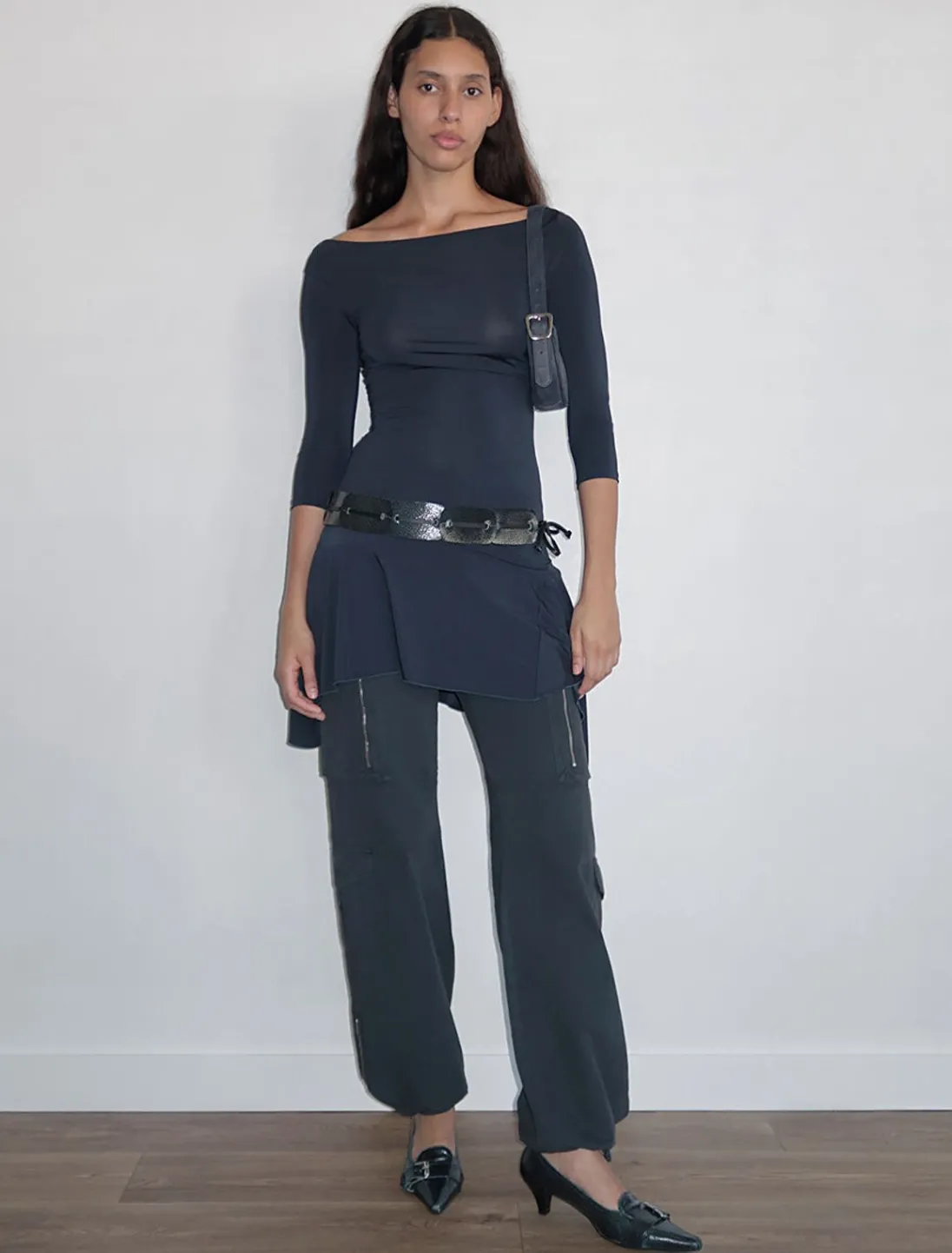 Blød Minikjole Med 3/4 Ærmer Og Asymmetrisk Halsudskæring.