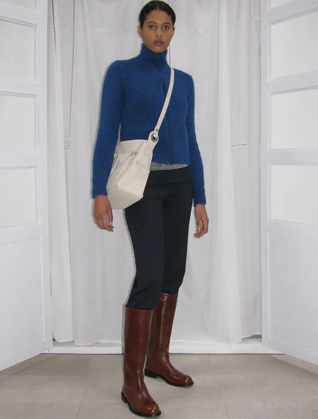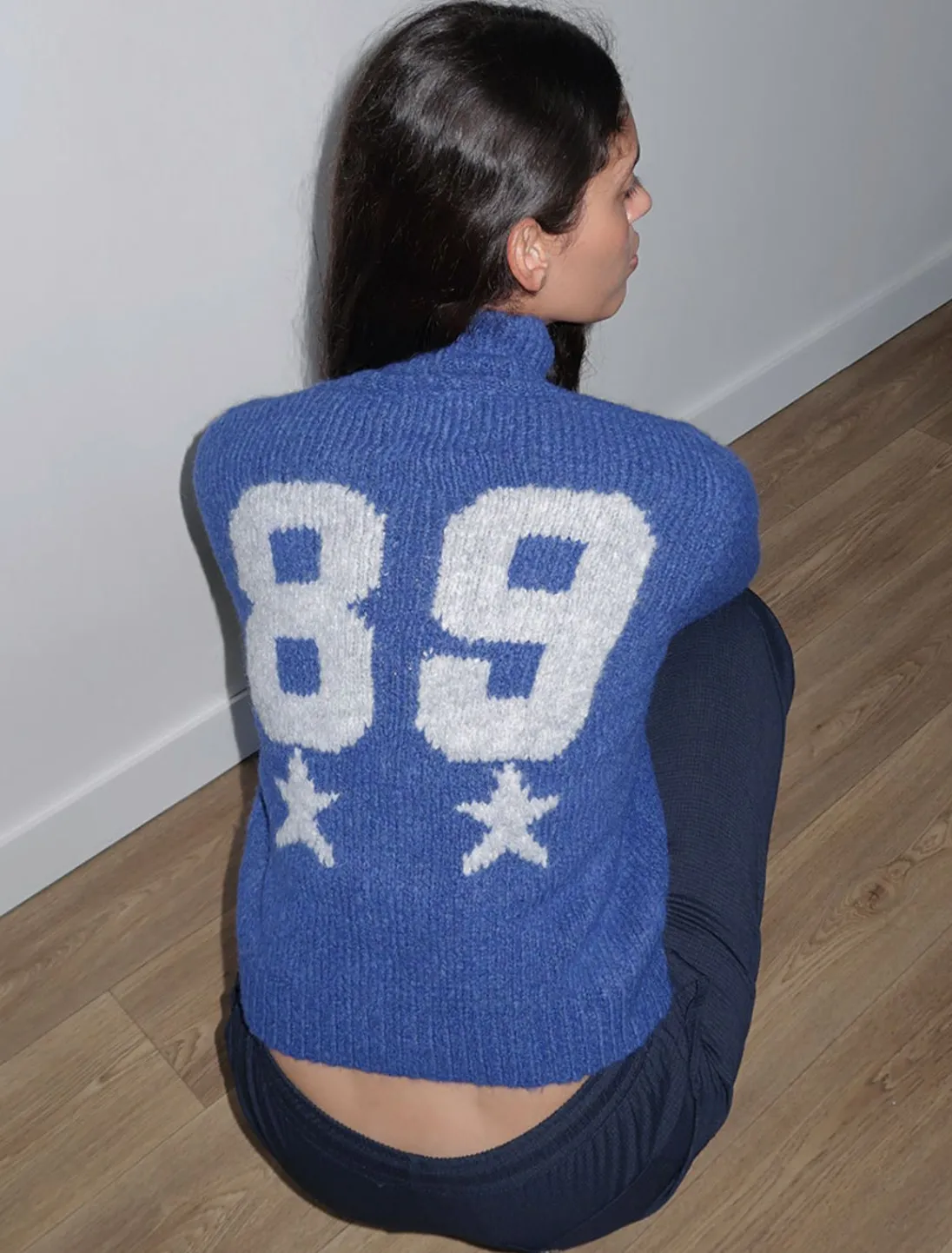 Blød Strik Cardigan Med ’89’ Intarsia På Ryggen.
