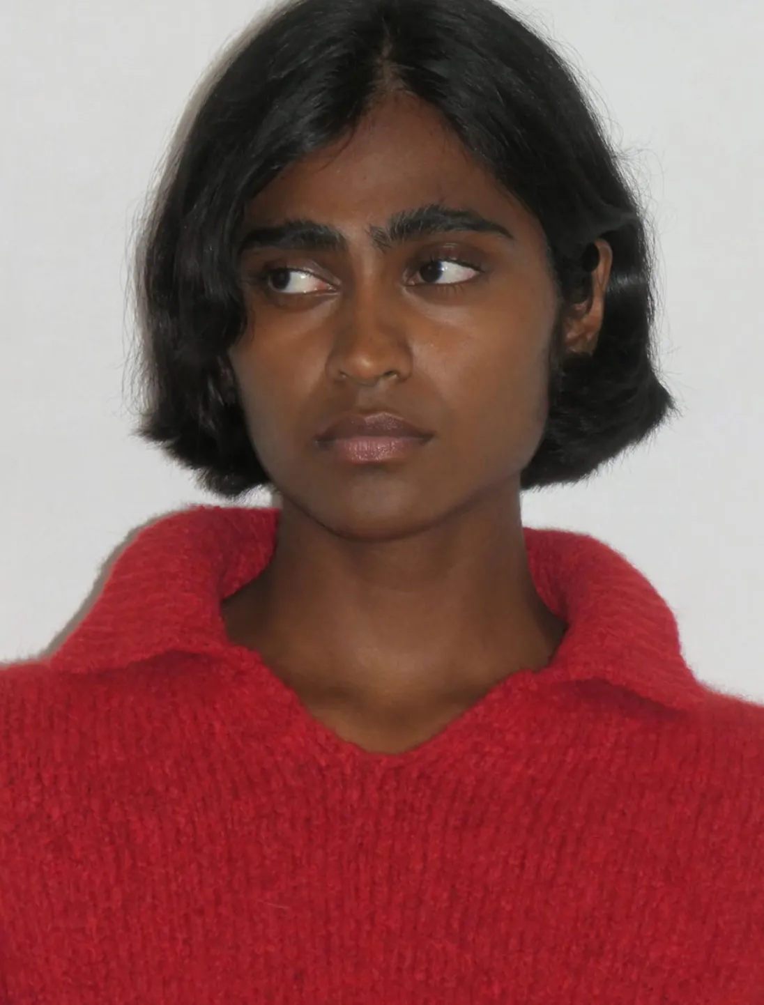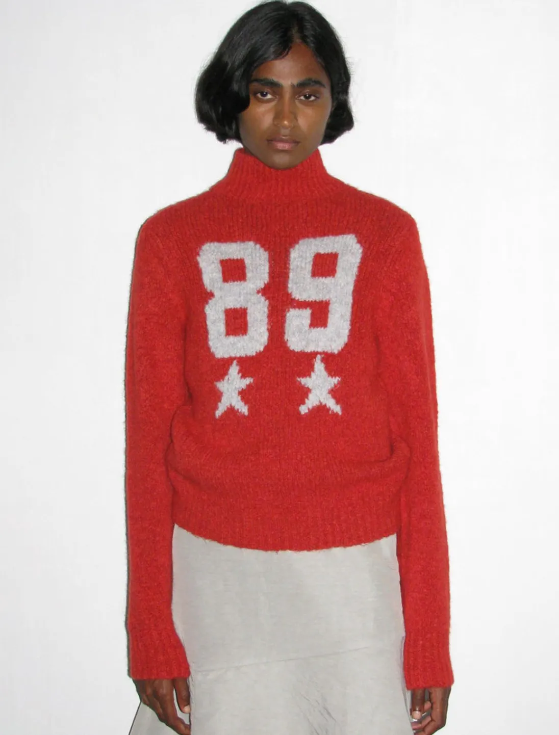 Vendbar, Blød Striktrøje Med 89 Intarsia Og Knappet Krave.