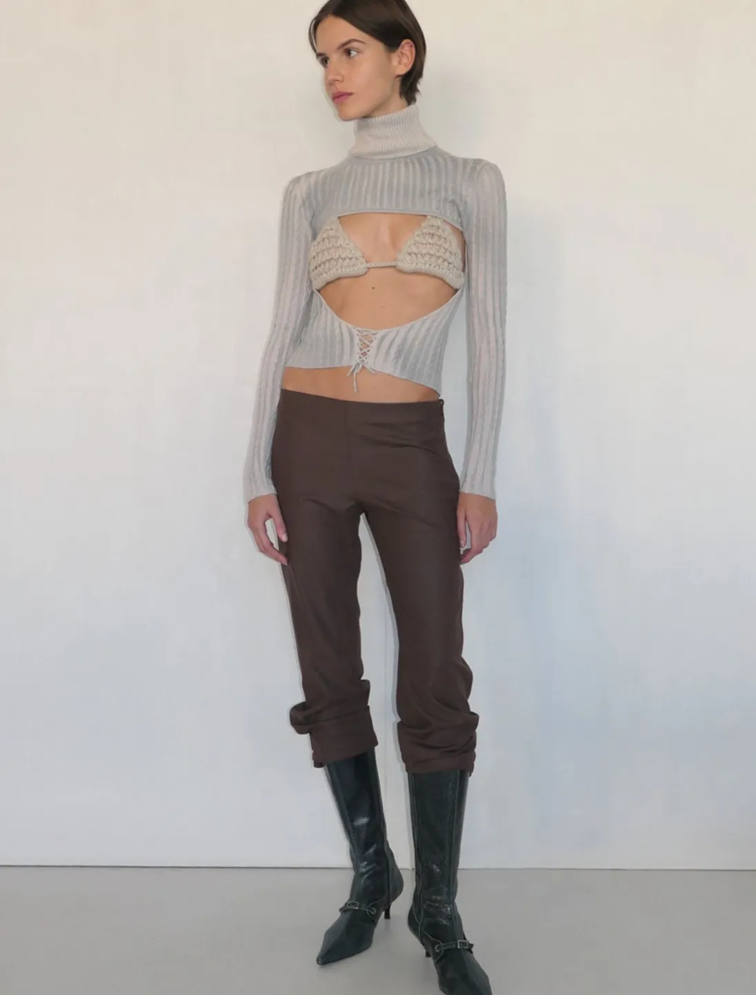 Langærmet Strikket Top Med Høj Hals Og Åben Ryg.