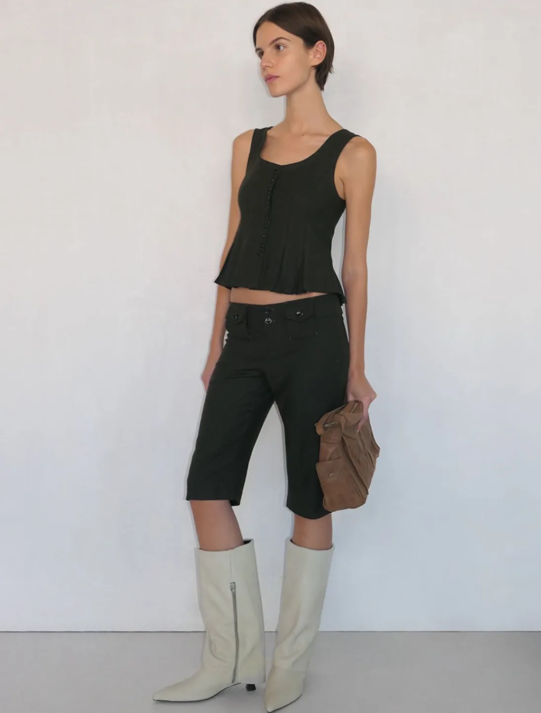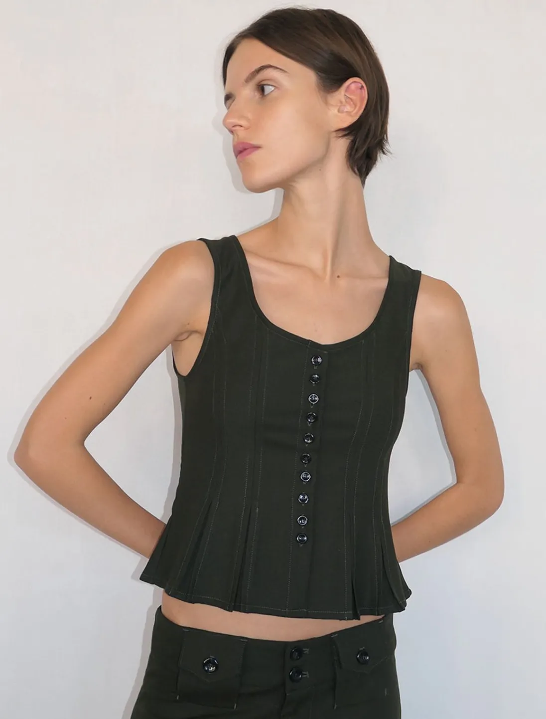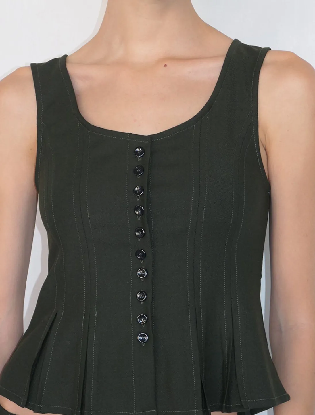 Utilpasset Top Med Godet-Kant Og Knapper Foran.