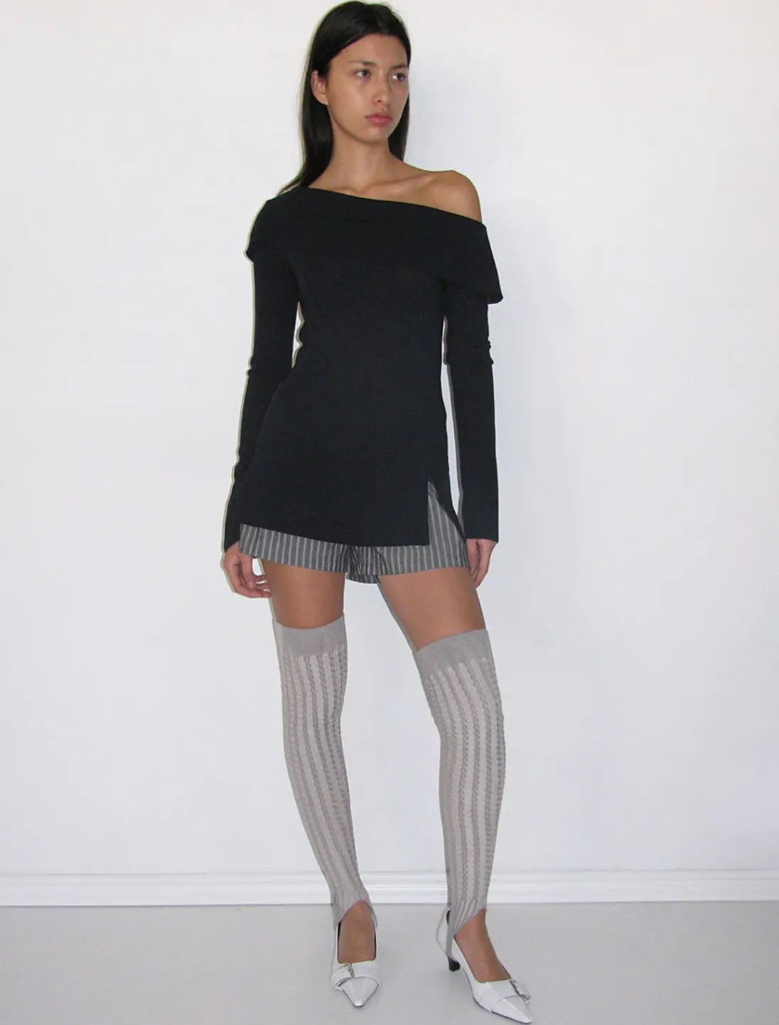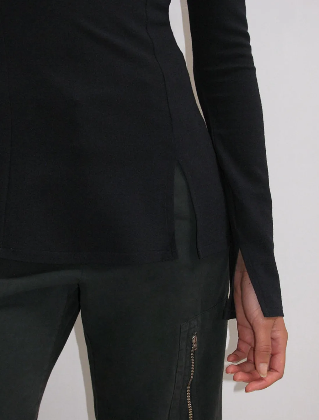 Langærmet, Elastisk Uldtop Med En Foldet Asymmetrisk Halsudskæring Og Detaljerede Slidser På Kropskant Og Manchetter.