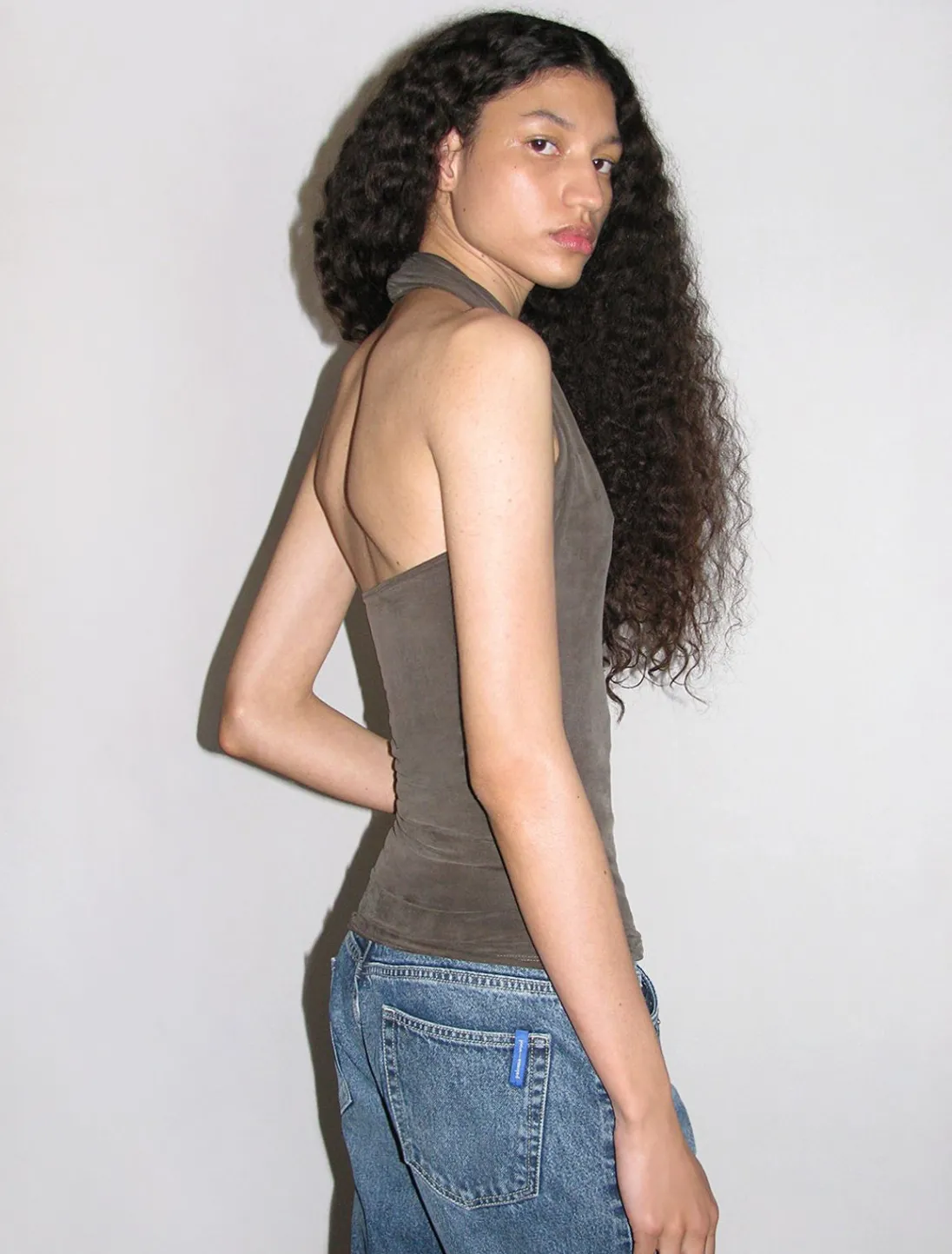 Asymmetrisk Cupro Halter Top Med Draperet Halsudskæring.
