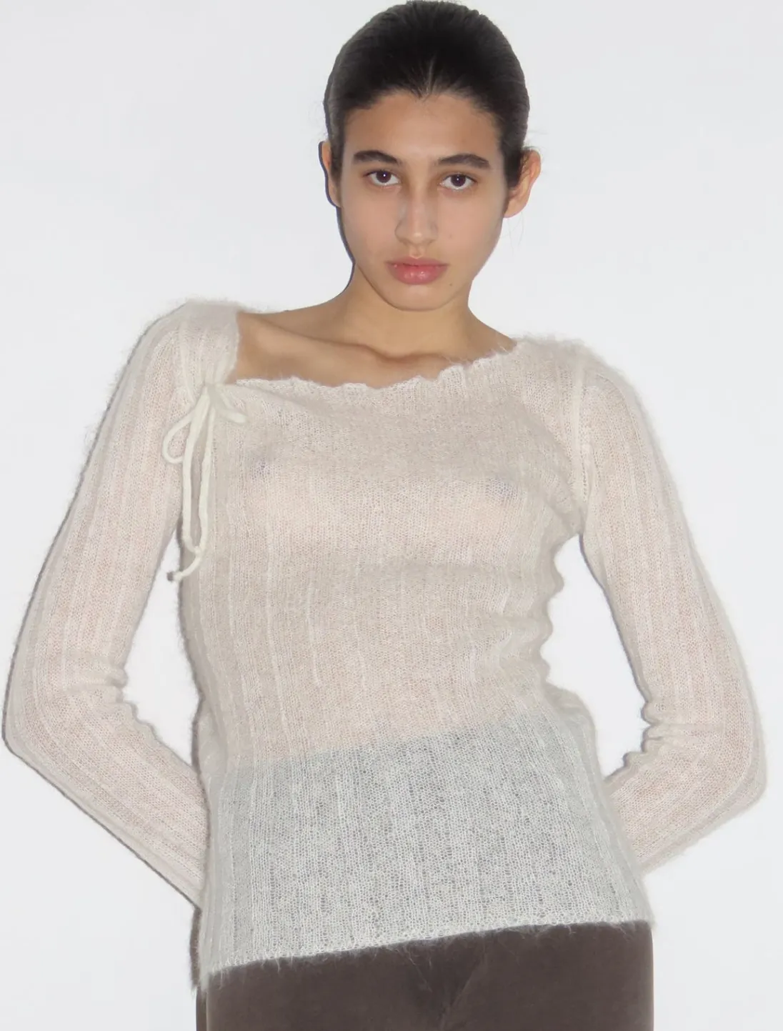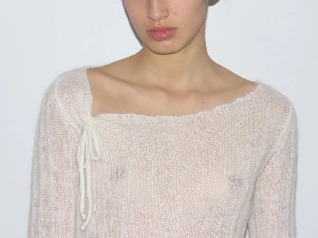 Langærmet Sweater Med Ribstrik Og Sløjfedetalje På Skulderen.