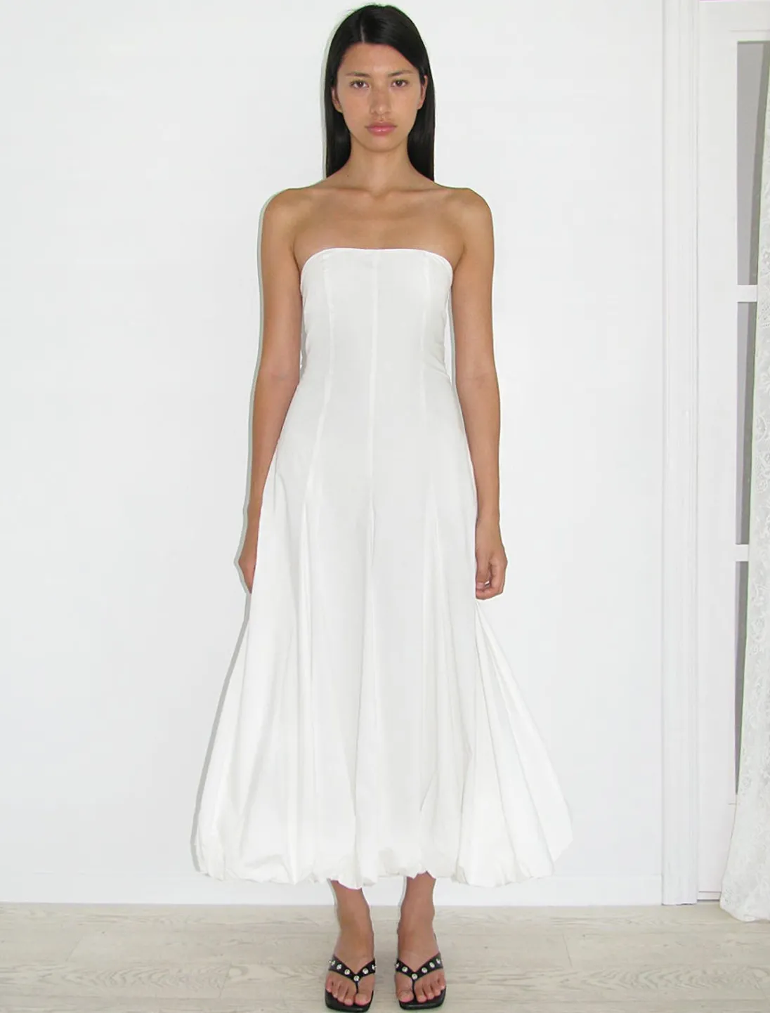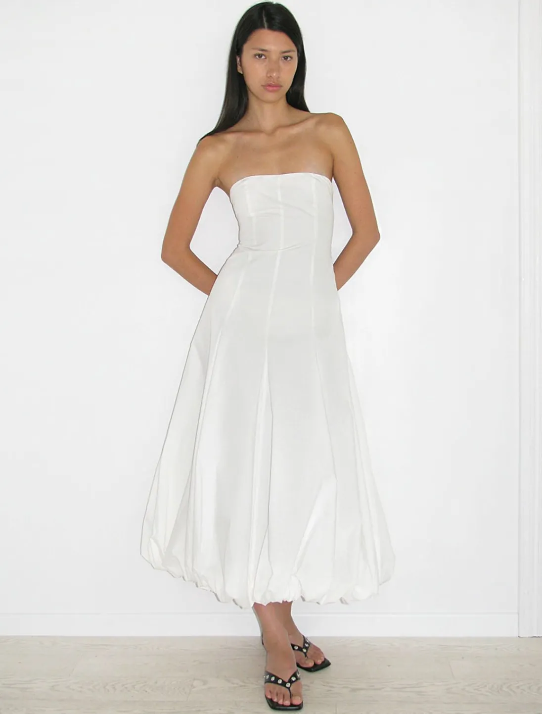 Stropløs, Lang Ballonkjole Med Justerbar Ryg Og Usynlig Lynlåslukning.
